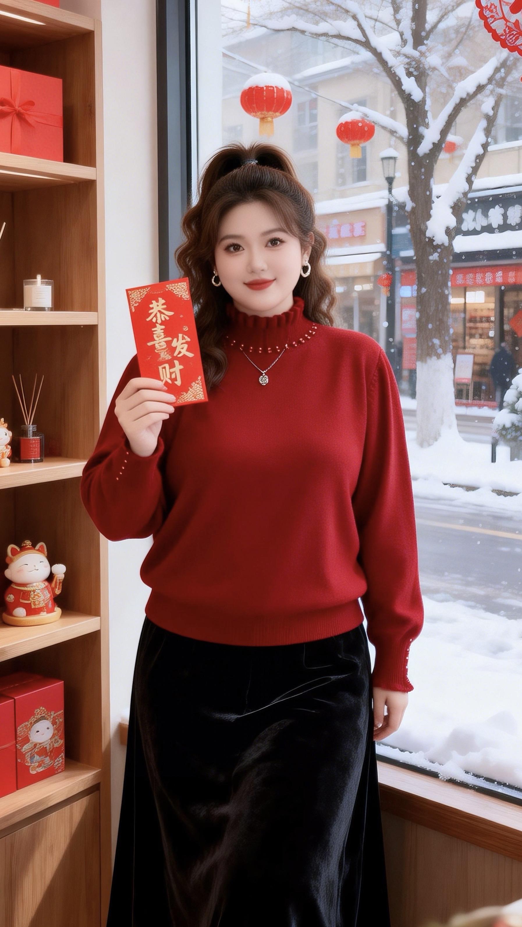 大码穿搭针织打底衫新年好运红我先穿上了就要穿得漂漂亮亮去聚会胖妹妹的冬季有效穿搭