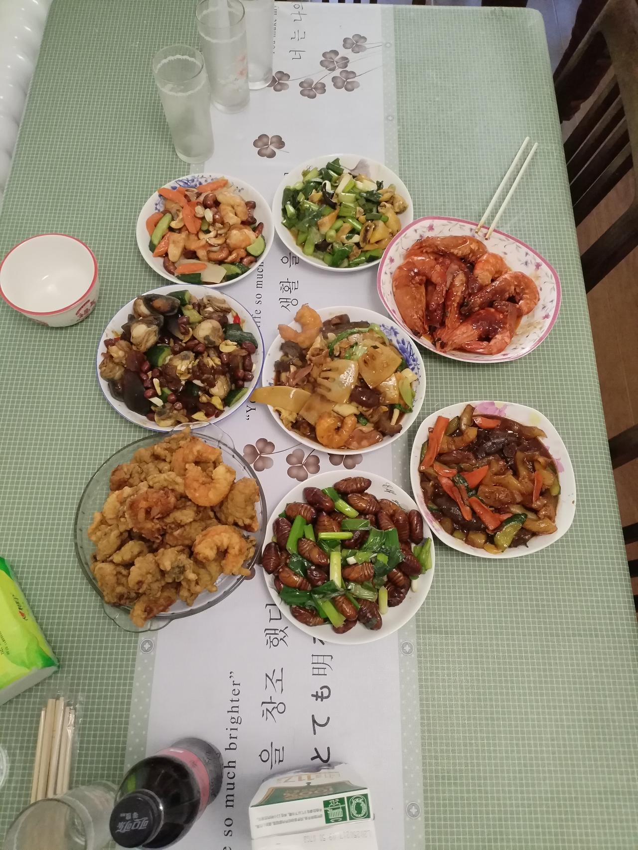 尽管我们中国人对一年之始的阳历年不太重视,喜欢程度不如我们的中国年。但是,毕竟是新的一年开始,总得有个仪式感。 因此,我们全家还是相约聚在一起,搞个家庭午宴庆祝一下。 多年来,像这样节假日的主厨,总是老伴主角儿。今年,我们家推陈出新,进行了改革,儿子主动请缨,当上了家庭主厨。 经过一个上午的忙碌,八个大菜终于搞齐了。 看着这些丰盛的菜肴,我们高兴无比,孩子终于成为了家庭的中流砥柱。 我们中国人的习俗传承,大概都是这样,通过每个家庭的代代相传,汇总在一起,才有了我们中国人民的民族大融合,真正过上了像今天这样的幸福生活。
