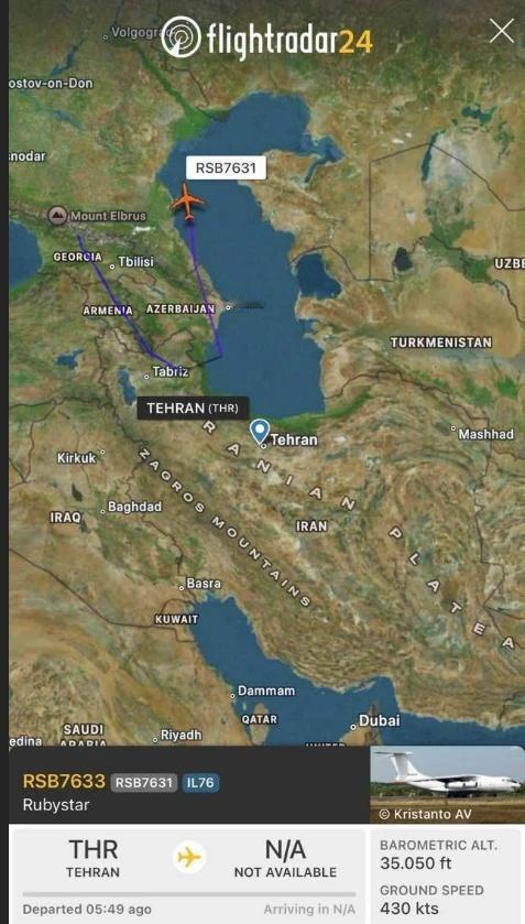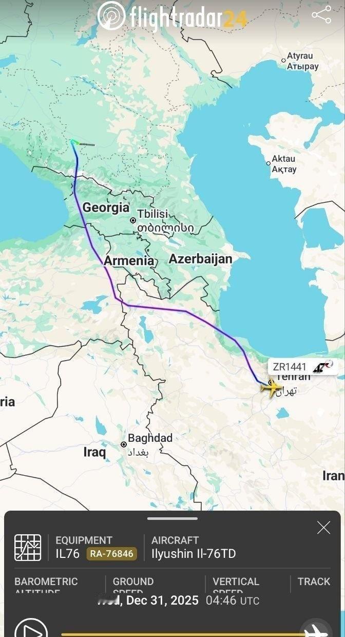 在2026年1月的过去24小时内,5架俄罗斯运输机飞往伊朗。