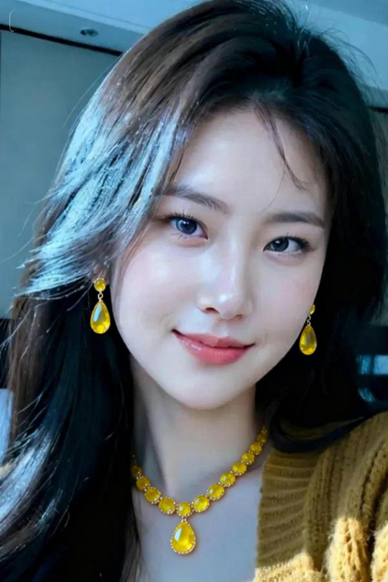 温柔微笑,黄色珠宝闪耀,甜美可人!😊✨