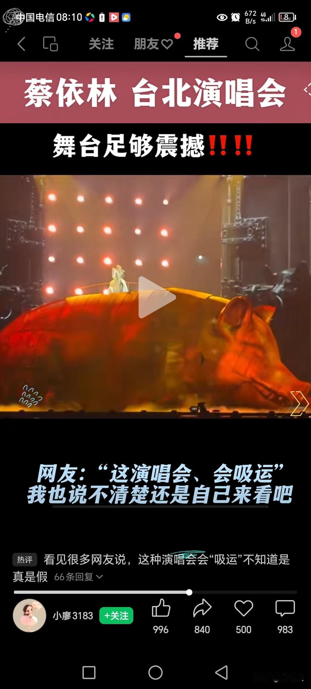 蔡依林台北开演唱会,创新十足,大胆创新。 有巨蟒,有大肥猪,还有飞马,有多只手美少女,甚至有法老。 更夸张的是啊飘也出来,牛头马面都上班了。 蔡依林大胆文化,巨蟒只是其中一环节。 如今行业都不景气下,蔡依林还能创新,花费巨资开演唱会,应该是疫情后最开放的明星,如她72变,爱情36计一样出色。