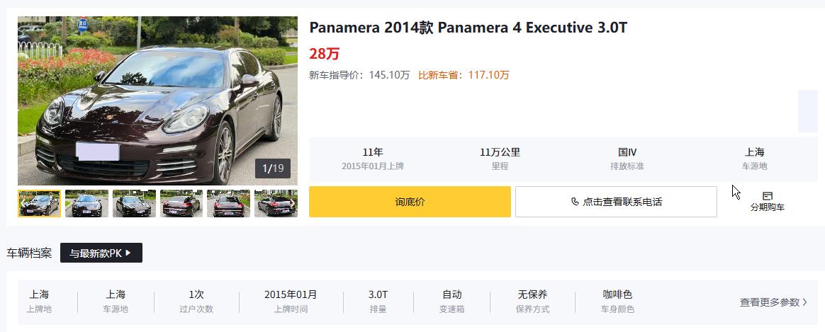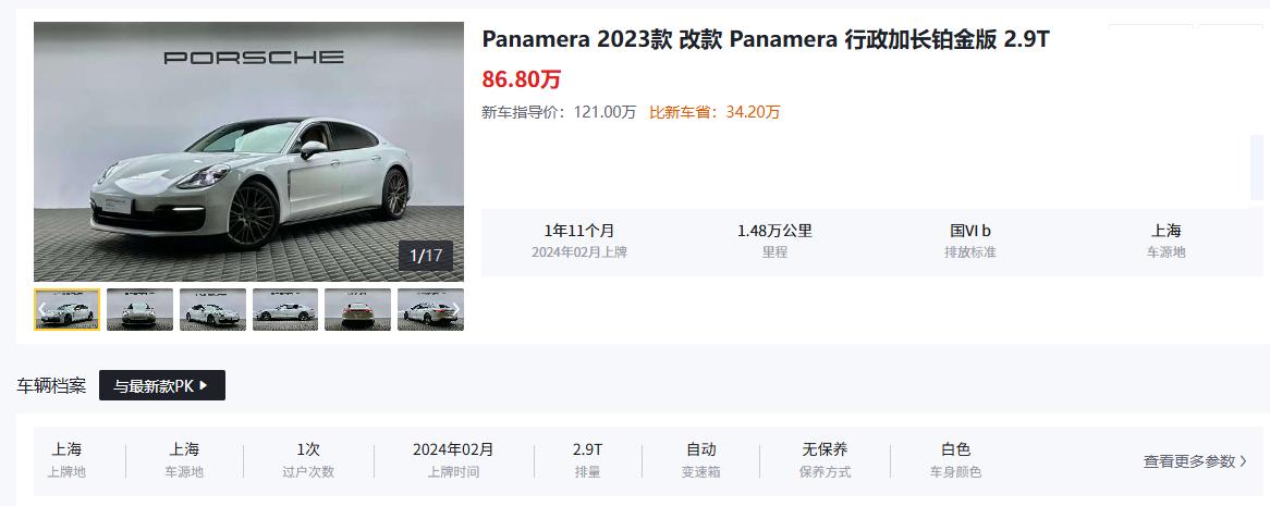 二手保时捷Panamera选对才叫捡漏,选错纯属交智商税!别信“越新越值”,也别跟风追顶配,核心看车况、年款和配置匹配度,我觉得行政加长版就不错,敞篷版和老款3.0L自吸款直接pass! 行政加长版是二手Panamera的带劲选择,尤其是2023款改款行政加长铂金版2.9T,数据显示新车指导价121万,二手准新车能省34万+,26万首付就能拿下。这类车大多是企业主或高收入人群的代步车,2024年上牌、过户1次以内、里程数低的车况精品,无重大事故、无火烧泡水的官方认证车,性价比直接拉满。 买这款二手车的人,说白了就是冲“花少钱享豪车质感”——行政加长版后排空间够大,商务接待有面儿,日常通勤有牌面,2.9T动力够劲还不费油,360全景影像、自动驻车、后排娱乐系统这些实用配置全配齐,兼顾体面和实用性。另外,2021-2023款是首选年款,搭载2.9T双涡轮发动机,动力输出稳定,变速箱换挡平顺,故障率低;2019-2020款价格更低,但要重点检查变速箱工况,避免后期维修踩坑;2017款及以前的老款,尤其是3.0L自吸版本,动力弱、配置落后,维修成本还高,不建议碰。 敞篷版二手Panamera就是智商税重灾区!敞篷机构后期维修成本极高,二手市场里这类车大多被频繁使用,密封胶条老化、电路故障是常事,而且其保值率比硬顶版低15%以上。买二手Panamera别贪多配置,基础的全景影像、驻车雷达、车联网就够用,多余的性能套件不仅加价还不实用,后期想转手都难。年款选择优先2022年后的改款车型,优化了变速箱逻辑和内饰做工,2020年前的车型要仔细排查发动机漏油问题。记住,二手Panamera的核心价值是“豪华+实用”,偏离这个需求的配置和年款,再便宜也不能碰。【来自懂车帝车友圈】
