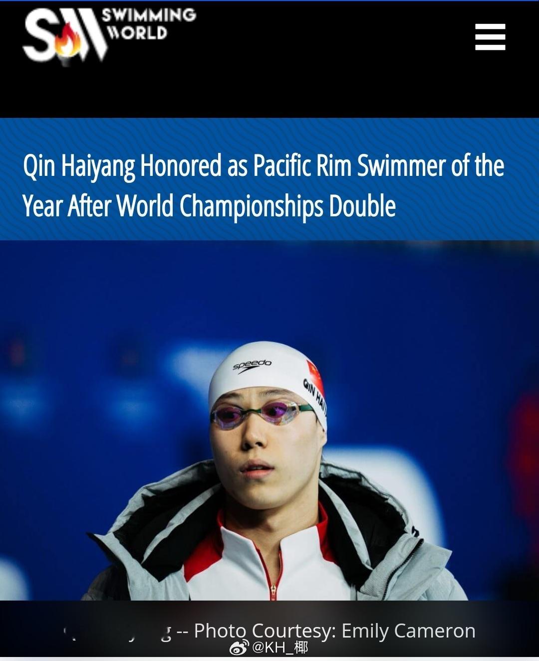《游泳世界》杂志评选2025环太平洋地区年度最佳男子游泳运动员-🇨🇳覃海洋恭喜!