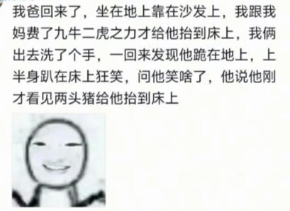 我爸喝醉了半夜来我屋把我假发套头上,也不开灯,拿我桌子上牛奶挤我脸上说给我洗脸,谁懂被牛奶呛醒看见一个男女人的恐怖感