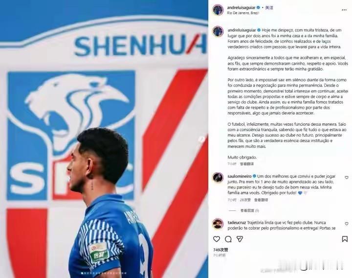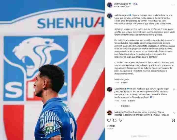 路易斯怒指申花俱乐部对他缺乏尊重… 昨天上海申花官宣五名球员离队,其中就包括上赛季球队神锋路易斯,就当大家认为这是球队一次正常的人员够更替时,路易斯在社媒平台上一篇短文却让这起事件再生涟漪。 路易斯讲道在赛季结束后,他已经积极准备和申花进行续约的意愿,并且还接受了俱乐部提出的任何条件,但是我和我的家人却得到对方尊重和职业素养对待,这是绝对不应该发生的。 路易斯最后讲道对于这个结果我深感失望,但也可以问心无愧的离开,祝愿球队和球迷一切好运。 虽然我们不知道路易斯和申花之间发生了什么,但是就此事造成的影响需要进一步观察, 不过需要指出的是职业球场从来没有真正意义的人情世故,而是根据自身需要而进行到优胜劣汰罢了![作揖][作揖][作揖] 带定位晒今日生活 我的今日状态:😁轻松愉快 我这里的天气:☀️晴天