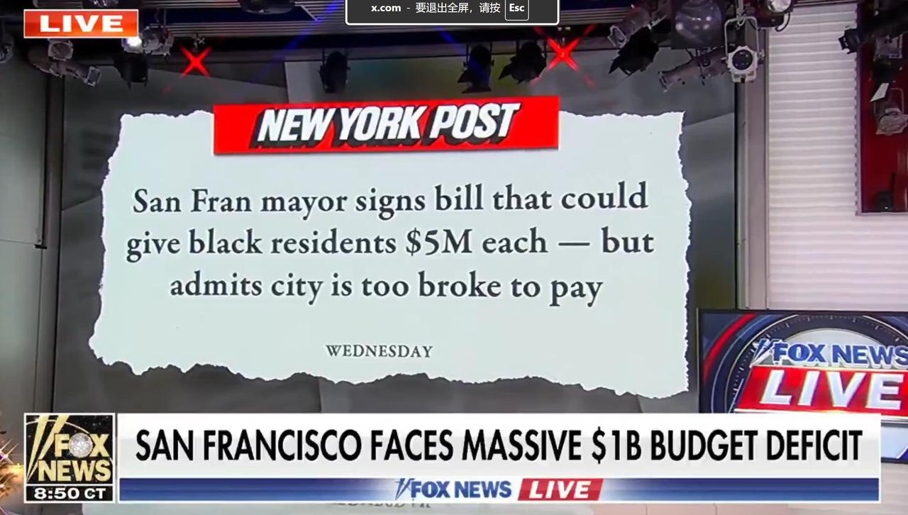 民主党旧金山市长刚签署了一项法案,给每个黑人居民500万美元补偿金,理由是200多年前他们祖先被当作黑奴买卖。 且不说这种理由能不能成立,仅从操作层面,旧金山目前财政赤字是10亿美元,根本没钱支付这每人500万。旧金山目前有5万黑人,总赔付额度为2500亿美元,以旧金山的财政收入,需要100多年不吃不喝才能付清这笔赔偿金。 那以后,旧金山只能向联邦政府要钱或者巨额增税,才能凑够这笔钱。 南评:继续作吧,只赔付旧金山的黑人这也不“政治正确”啊,美国还有那么多黑人呢,他们不用赔吗?