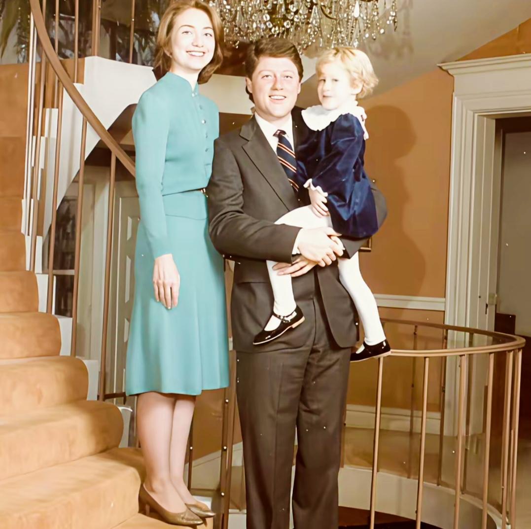 年轻的克林顿一家三口,是不是很温馨啊? 年轻时的希拉里看上去颜值比现在漂亮多了啊? 此时的克林顿和希拉里是不是还非常恩爱啊?