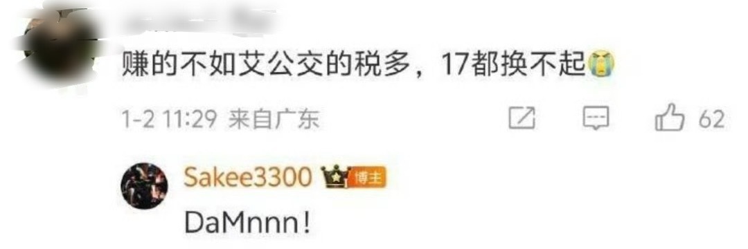 asen sakeeSakee回应“赚的不如艾公交的税多,17都换不起”,表示DaMnnn!接着Sakee还发了Asen的口头禅:4啊Sakee asen