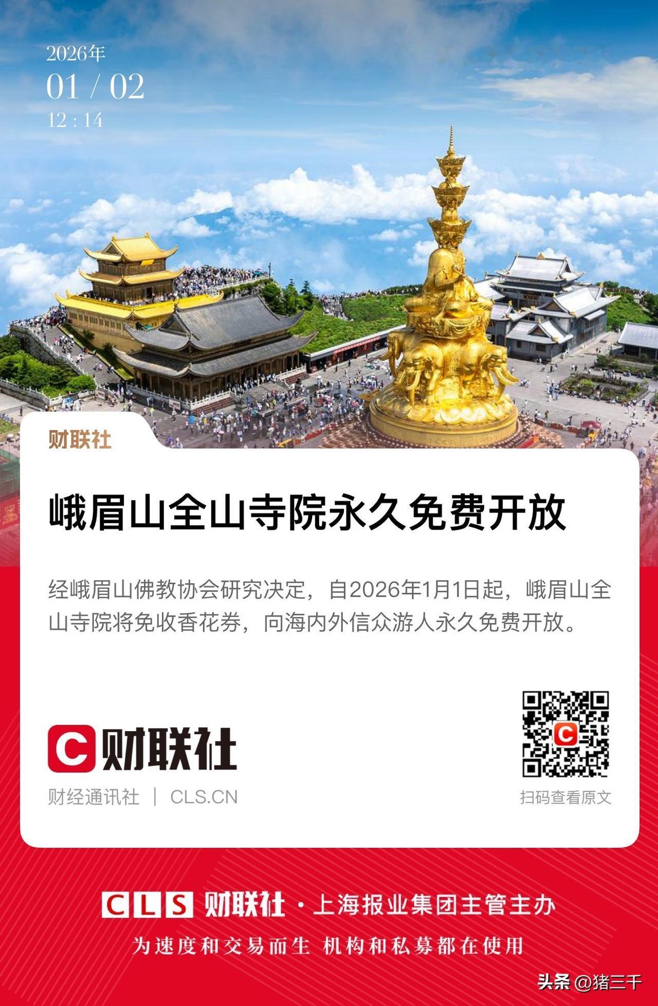 峨眉山宣布全山寺庙免费开放! 峨眉山是打通了任督二脉了, 从股东免门票开始, 到现在的寺庙免费开放, 这不就是钓鱼打窝… 呃不对这就是筑巢引凤呀! 只要你人来了害怕你不消费,哈哈! 妙不可言呀! 尔滨就很聪明, 方方面面给南方小土豆体贴入微照顾到位, 用10个亿的投入撬动千亿旅游收入, 这买卖怎么干都划算。 最开始最成功的应该是淄博烧烤, 然后是贵州村超, 这都是新的现象级消费呀。 …