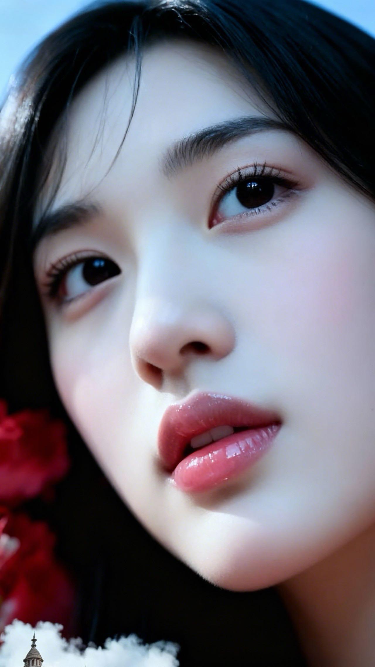 惊艳的东方美人,红唇与黑发相映成趣,宛如画中仙子。什么样的女生一看就知道很美 好看的女孩都长啥样的 黑发红唇女神 红唇美人照 大红唇 美女