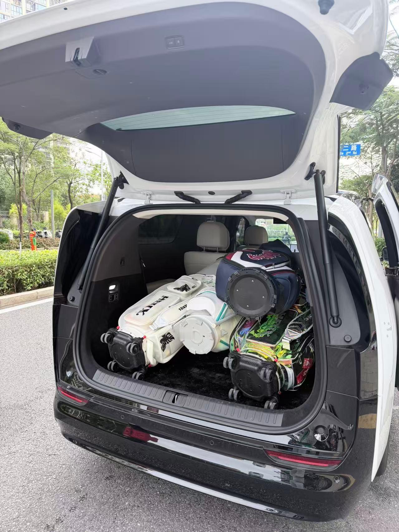 还好租了辆MEGA!朋友现在开的奔驰C,要是坐4个人就没法放下球包了,这时候MPV的优势就体现出来了!轻松放下4个球包,4个人还能舒舒服服坐着,开着通风和按摩,路上刷刷剧。回程朋友体验了一下,第一次开电车,从C换到MEGA也很好上手,不会觉得太难适应(停车不算)电车的油门响应也更跟脚,智能座舱让他惊呼,转头就让我看看二手MEGA现在多钱了,没想到24款的还得卖40多,太保值了吧理想MEGA