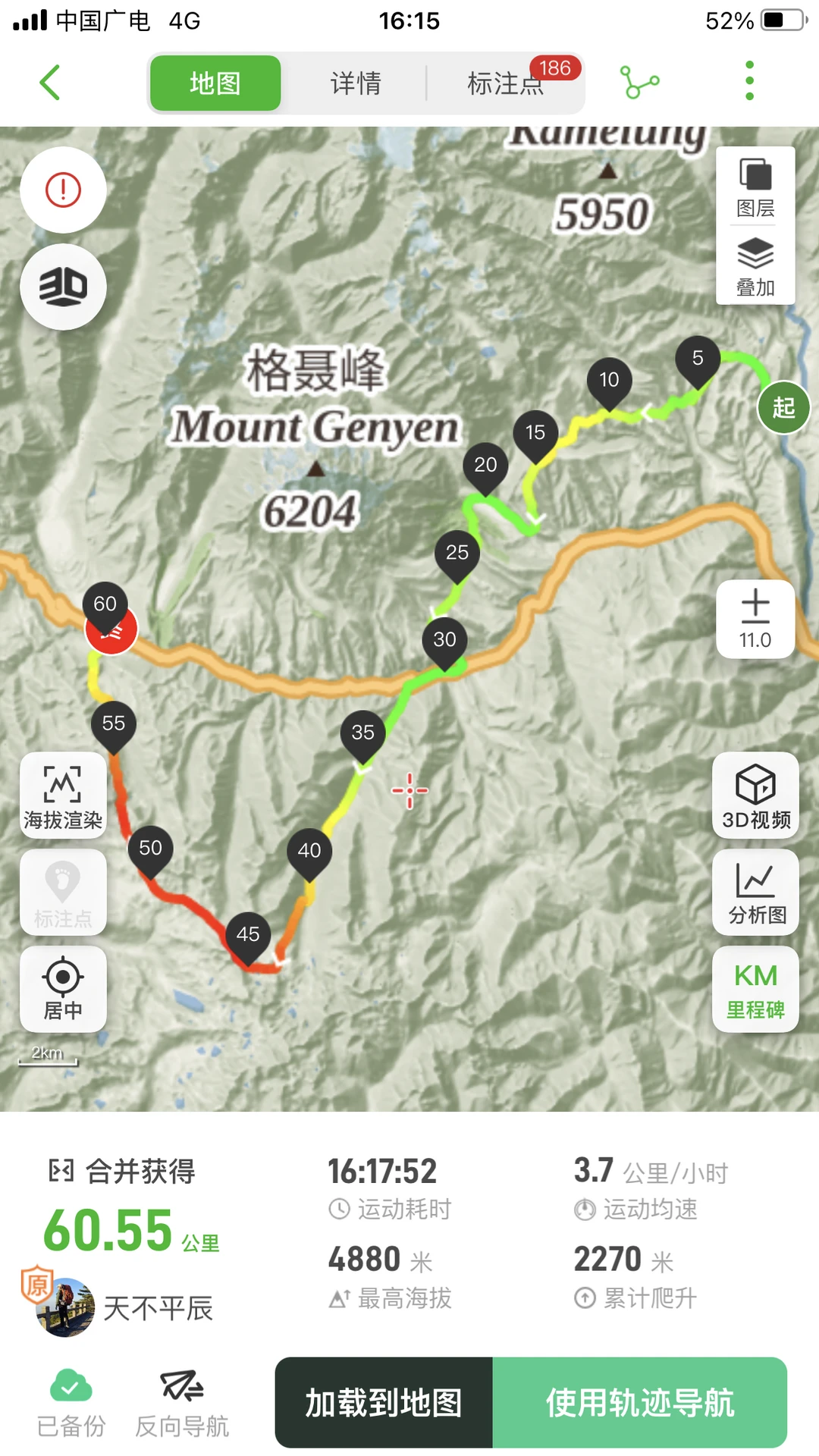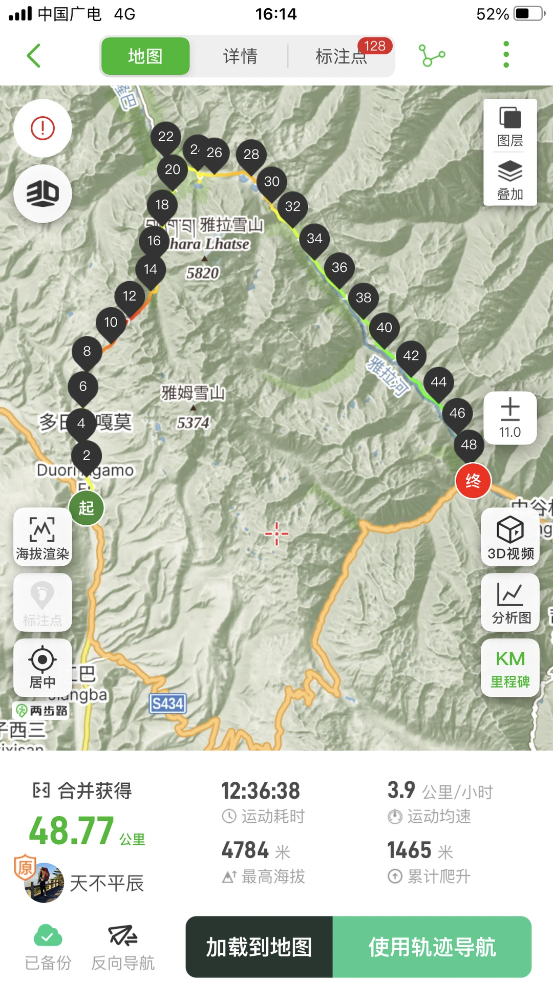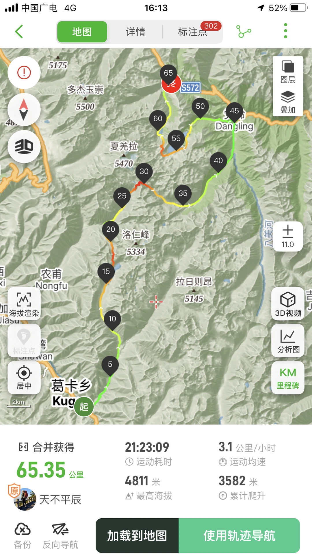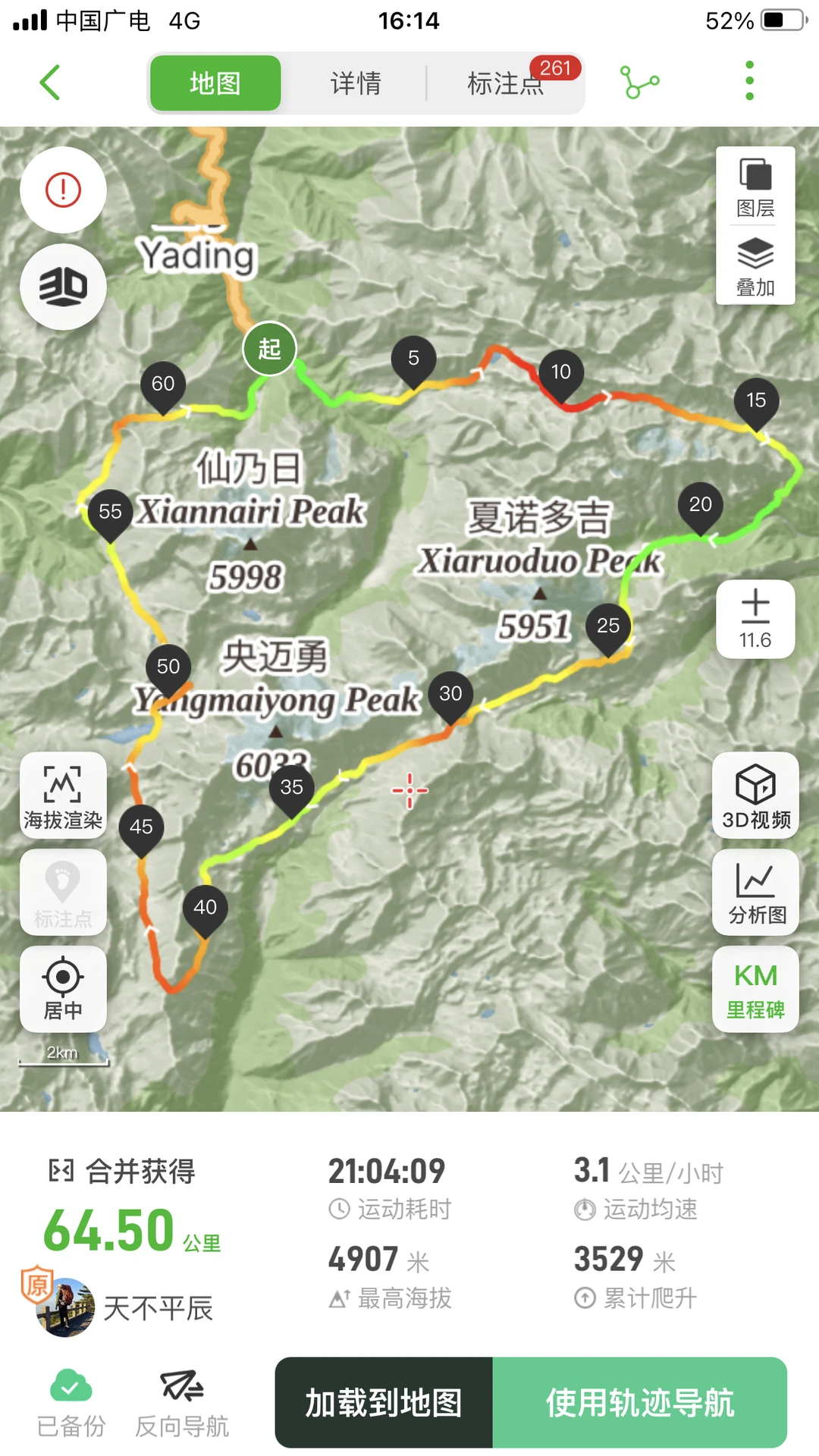 重装徒步9条线,合计里程709.45Km,累计爬升25823m,累计下降23870m,最高海拔4933m;