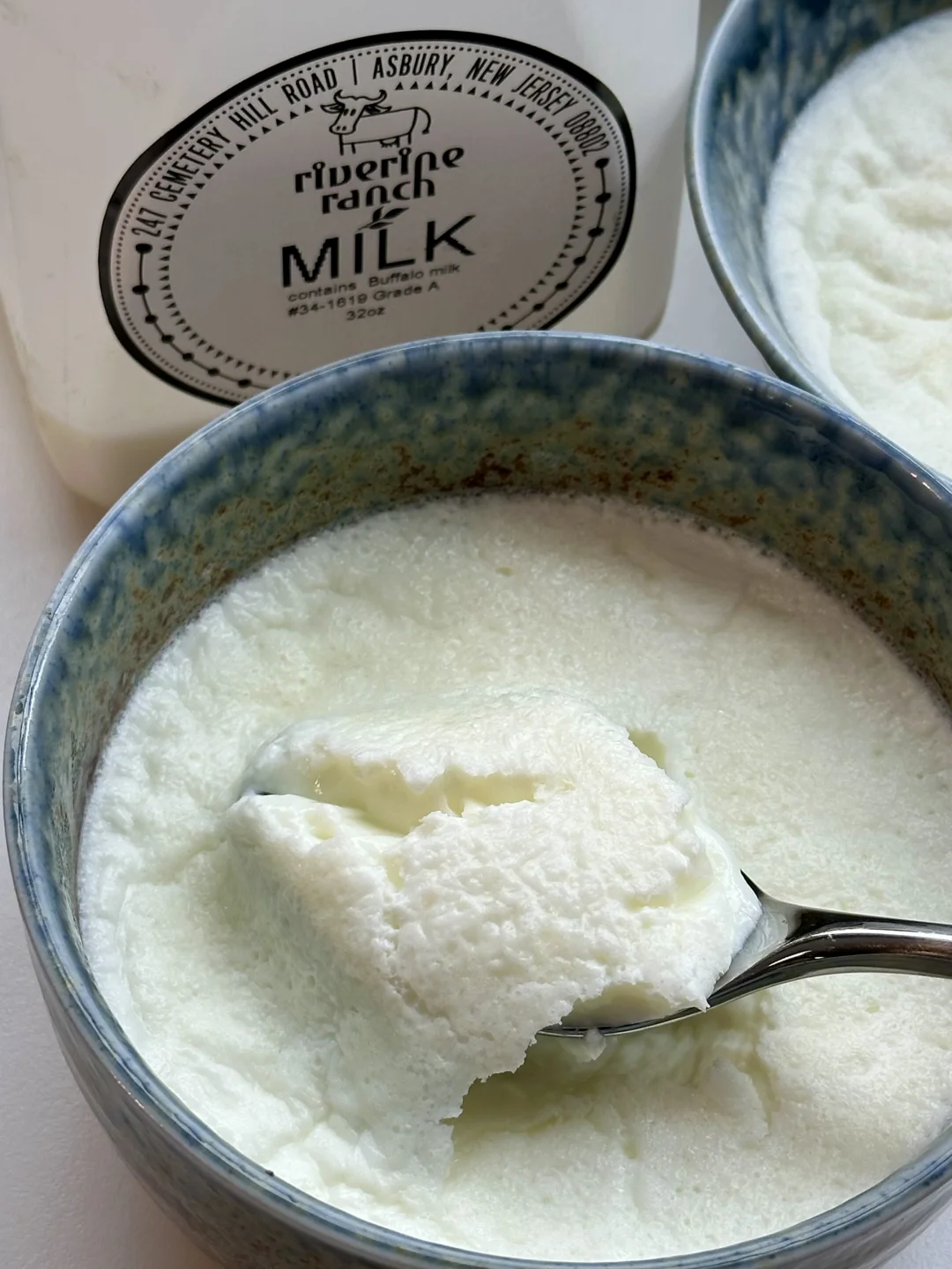 🥛双皮奶:男友发现农夫市场有水牛奶,乳脂丰富,做出的双皮奶奶皮厚实,美味过瘾。
