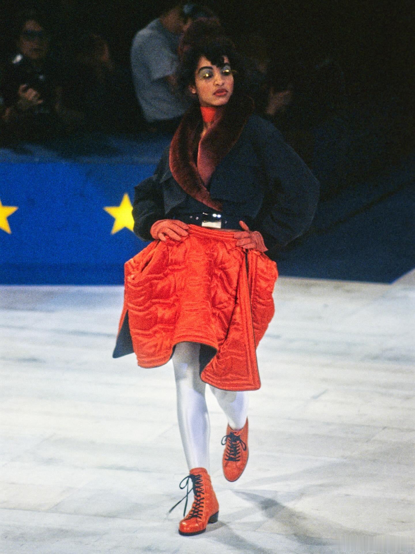 Jean Paul Gaultier 1991年秋冬系列,很特别的形式,在一个兼具马戏团表演和溜冰场功能的圆形场地内举办,这场秀一口气发布了125套造型,整场秀持续了一个小时。老爷子自己设计的年代,还是很有看点的!风格大赏时尚灵感解读