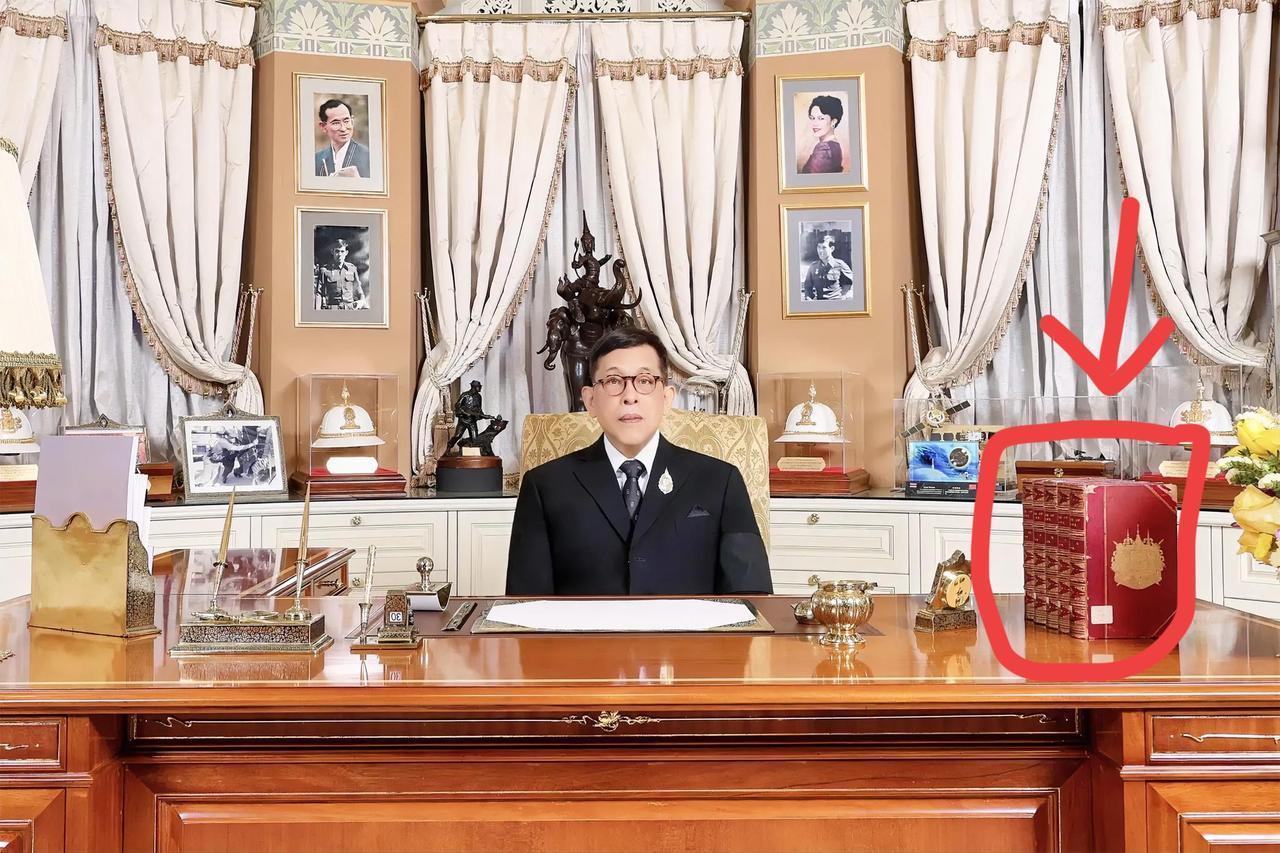 万万没想到…… 泰国国王致辞现场, 那个红色箱子和桌下的手,信息量太大了! 泰国国王玛哈·哇集拉隆功这次发表2026年新年致辞,现场画面透着不寻常的味道,信息量很大! 先说那张桌子上,最显眼的就是国王左手边放着的那个红箱子。这不是普通收纳盒,是带专属徽记的,专门用来装王室文书的御用物件,象征着王权和规矩,摆在那儿,就是一个态度。 但这不是最关键的,你再瞅瞅国王的手!别人发表讲话,按理说要么扶着桌子,要么双手合十放在胸前以示尊重,这是常理。可玛哈,手没放桌上,反而伸到了桌子底下去了!这样的操作,在很多国家都少见,更别提礼仪繁琐的泰国王室了。 这到底是无意之举,还是另有深意?是觉得累了想换个舒服姿势,还是这背后藏着我们不懂的王室密语?这就让人捉摸不透了。 再看看他身后的布置,父母的肖像、年轻时的照片,还有那尊象征守护与权威的因陀罗雕像,这一套组合拳下来,感觉每一处细节都不是随便摆的。 大家怎么看这桌下之手和专属红箱的搭配?
