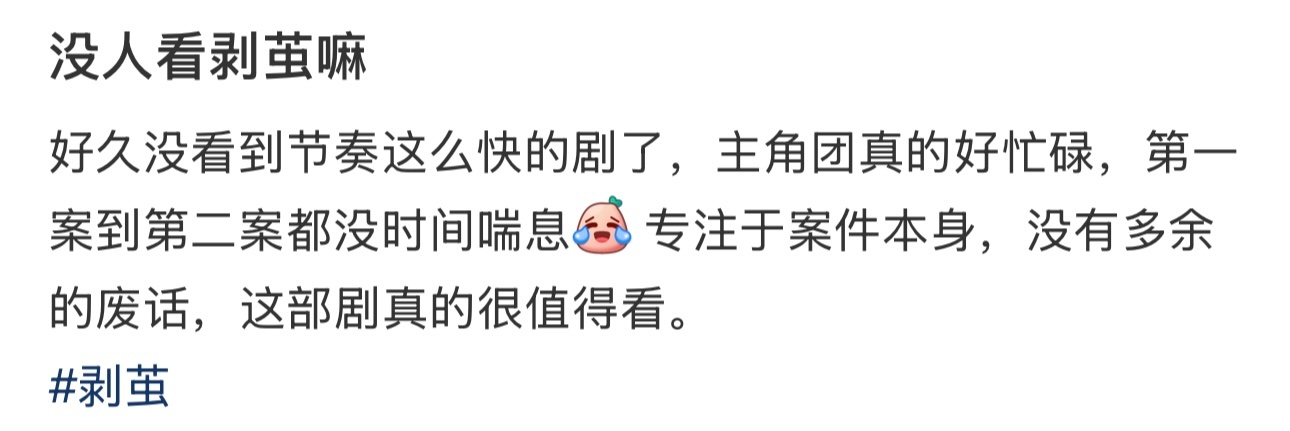剥茧纯本格推理剧 开年悬疑黑马《剥茧》来袭!纯破案纯推理无掺水,主角团沉浸式办案,睁眼查案的状态太戳人!完美复刻基层忙碌日常,案件越追越高能,咪咕站内登顶热度飙12000,推理迷的年度宝藏剧!