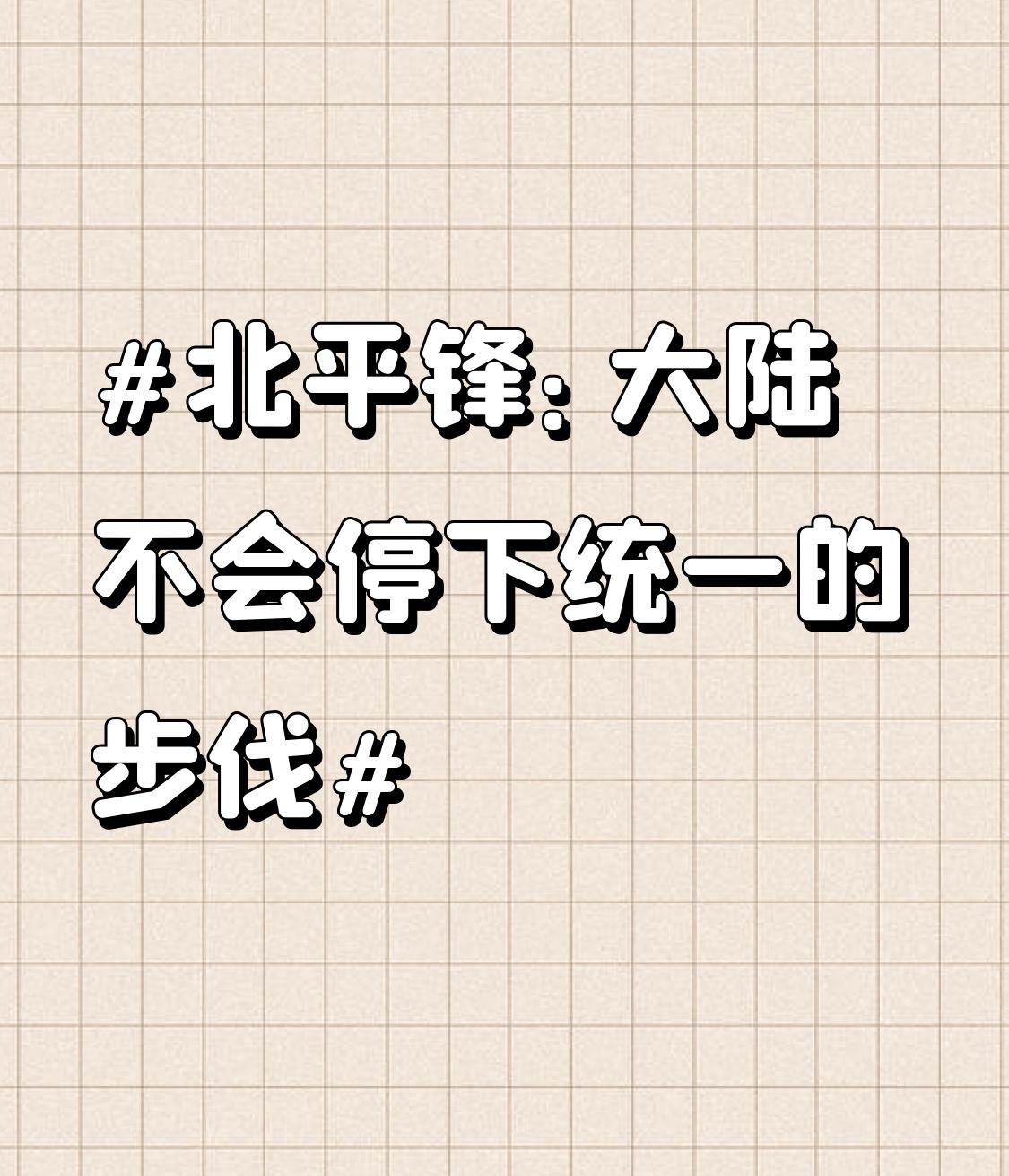北平锋:大陆不会停下统一的步伐 “北平锋”说得太对了,大陆不会停下统一的步伐。就像2025年那场“正义使命 - 2025”军演,解放军实弹精准落于台湾邻接海域,无人机俯瞰台北101,让台军“防御纵深”成笑话,赖清德的叫嚣也被狠狠打脸。从2014年到2026年,大陆对台话语措辞升级,战略定力更坚定。 还有日本,高市早苗发表涉台错误言论,小泉进次郎要在与那国岛部署导弹,野心昭然。但中方迅速反制,王毅外长严正回击。祖国统一是历史大势,任何“台独”行径和外部干涉都阻挡不了这滚滚向前的步伐。
