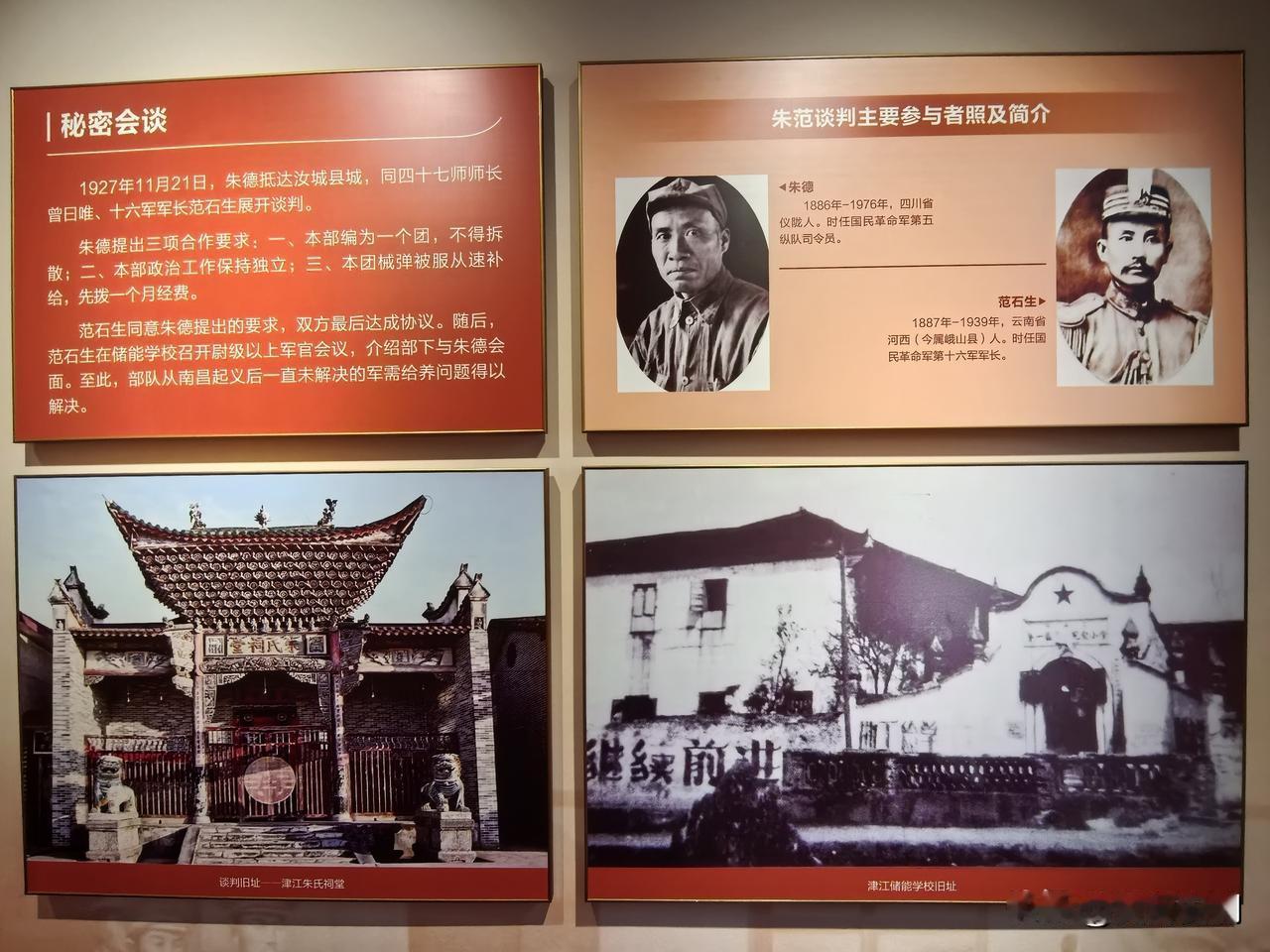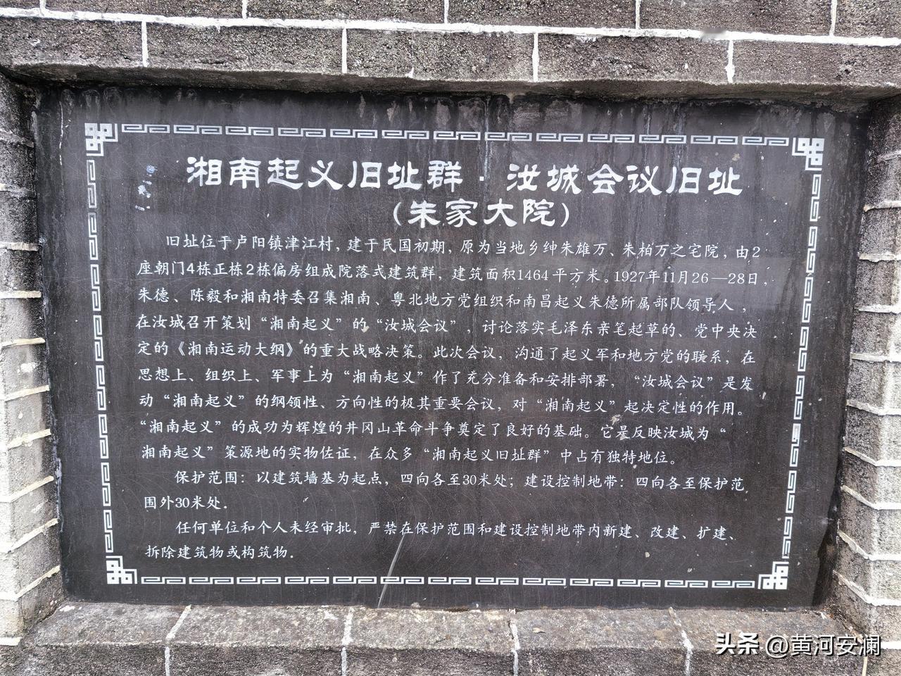 汝城会议旧址在汝城县卢阳镇津江村,2013 年就成了全国重点文物保护单位。1927 年 11 月 26 日至 28 日,朱德、陈毅在此开了湘南、粤北党组织负责人联席会议,也就是“汝城会议”,这为湘南起义做足了政治、军事、组织准备,是纲领性、方向性的重要会议,还为井冈山会师创造了条件。 当时朱德早在上堡整训就觉得和范石生合作条件成熟,安排人通知各地党组织到汝城开会。原本在衡永会馆,后因嘈杂搬到津江朱雄万宅院。如今汝城会议历史陈列提质升级重新开馆,旧址也和周边景点串成链,成了全域旅游重要部分。