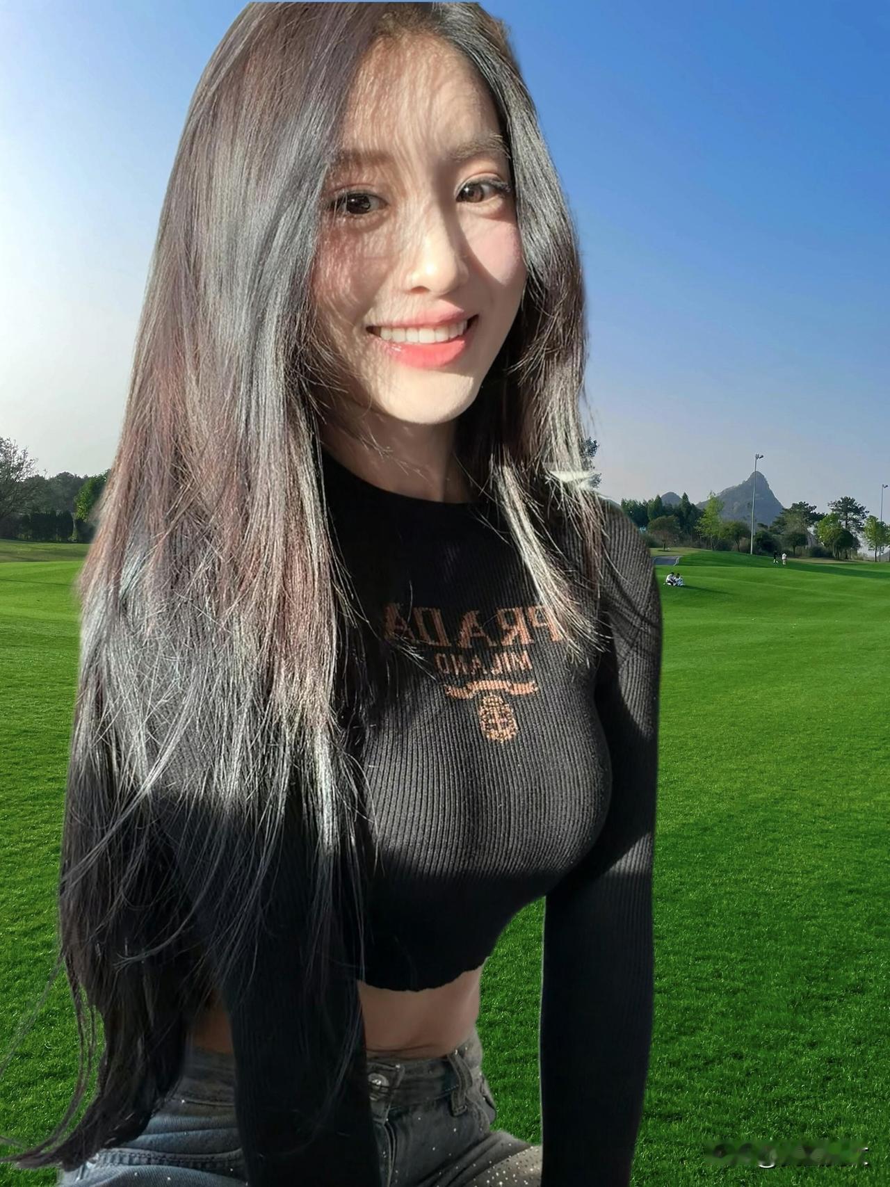 阳光明媚的公园里,微笑的少女与绿草相映成趣。