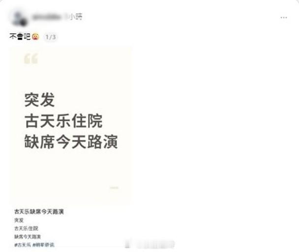 【On.cc】古天樂為《尋秦記》內地宣傳 傳身體不適入院藝人古天樂(古仔)、林峯、宣萱、郭羨妮、滕麗名、白百何、苗僑偉、洪天明等人主演的電影《尋秦記》票房報捷,連日來一眾演員在內地跑宣傳,連日來跑了多個地點宣傳與粉絲見面互動。不過,今日有粉絲透過社交平台表示「突發,古天樂住院,缺席今天路演。」亦有網民表示「係,我去嘅嗰場,阿峯(林峯)一嚟就講Daddy抱恙嚟唔到宣傳」。其實,今日佛山宣傳最初他戴口罩現身,之後的場次已經不見古天樂,只得番林峯、宣萱同朱鑑然三個人。古天樂傳身體出現狀況。連日來一眾演都員都落力配合宣傳,宣萱都不時透過社交平台與粉絲互動,她亦有點累表示:「謝謝你,真的累,但累得開心,你們都累,大家都保重身體。」一眾演員本月4日亦會在港進行宣傳。之前落力宣傳。古天樂演活角色。古天樂現身內地戴口罩現身宣傳。之後古天樂未有現身,只得番林峯、宣萱同朱鑑然三個人撐場。網友網上爆料。