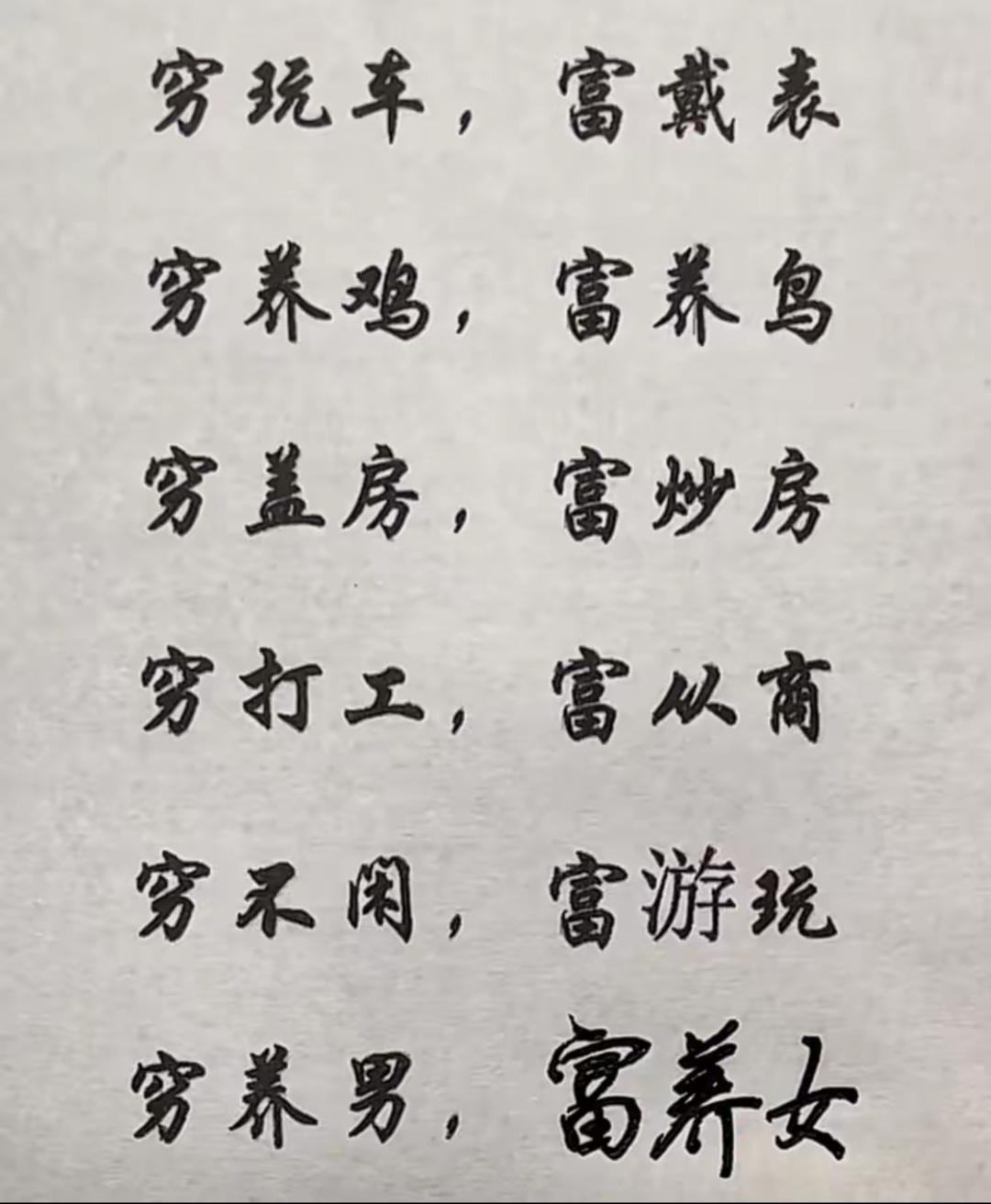 当今社会穷富的区别,很现实。
