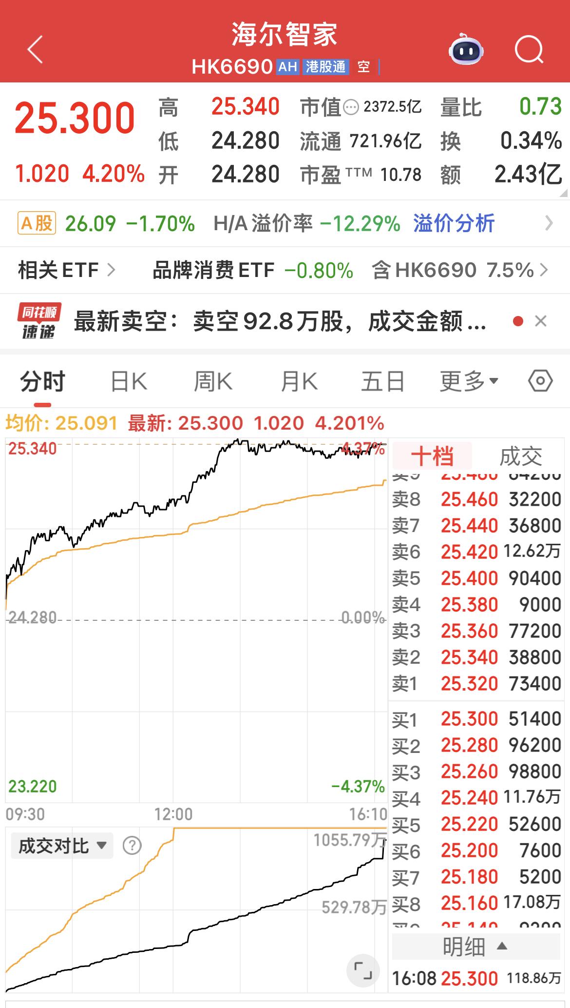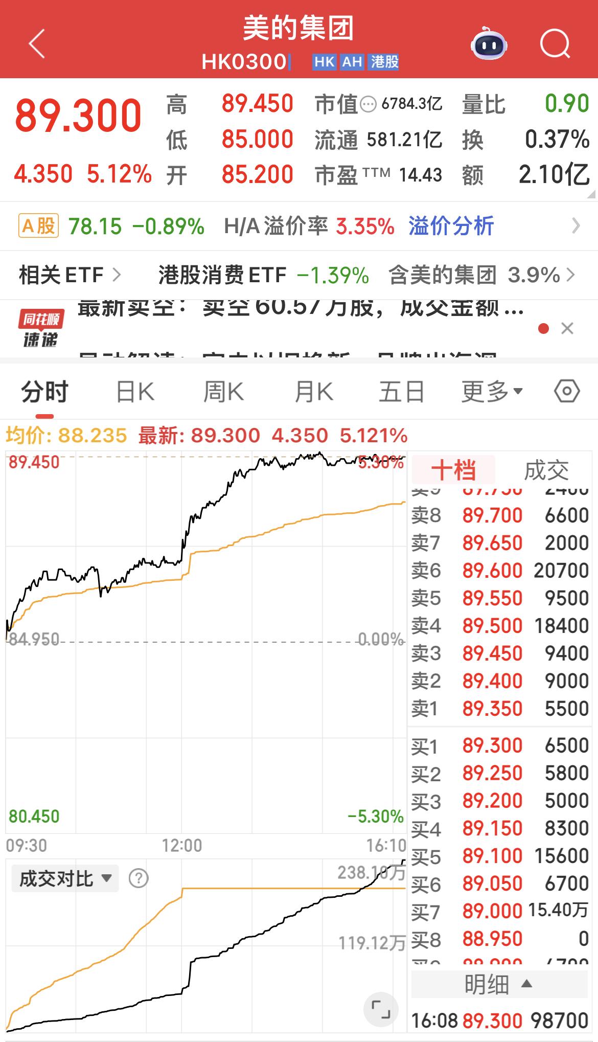国补继续,今日港股家电股大涨! 创维集团大涨10.45%; 美的集团大涨5.12%; 海尔智家大涨4.2%! 下周一,A股家电股大概率补涨!
