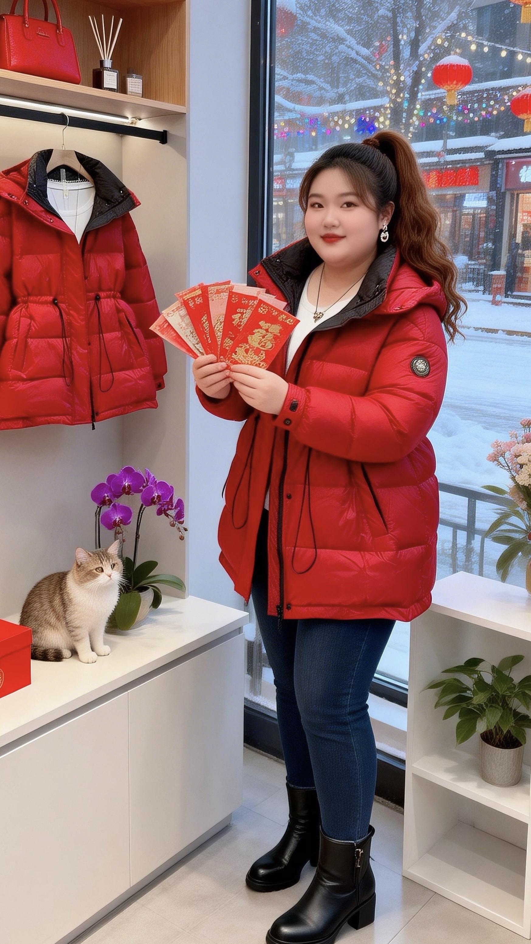 大码女装红色棉服 新年好运红我先穿上了 保暖又好看 微胖女生冬日衣服测评