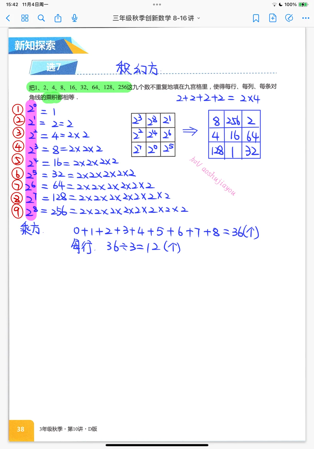 《幻方与洛书》三年级创新班奥数课堂笔记