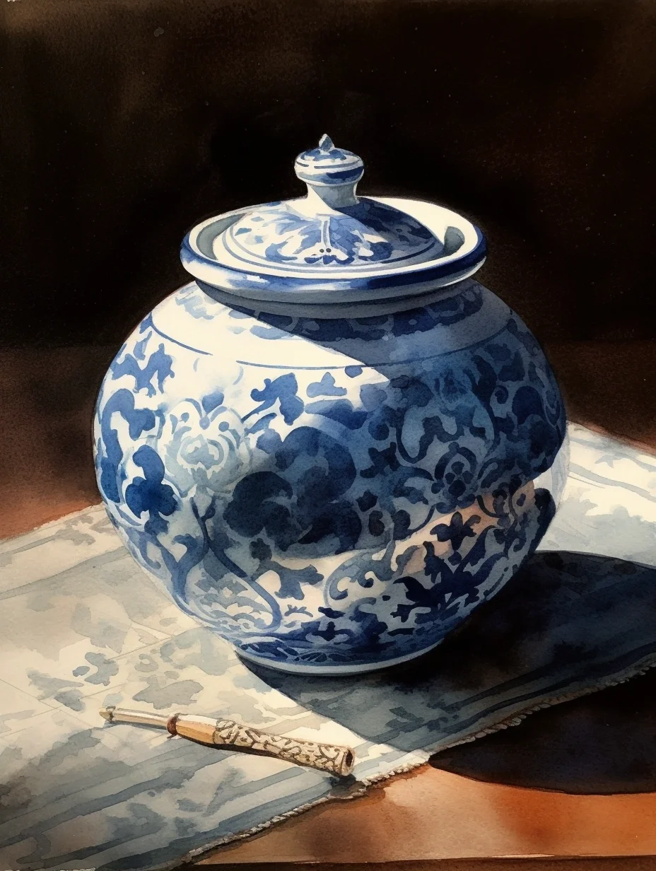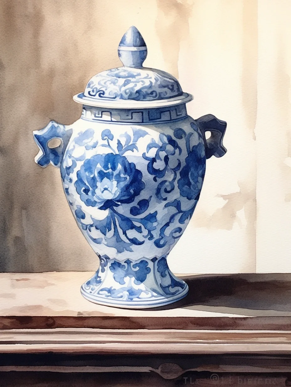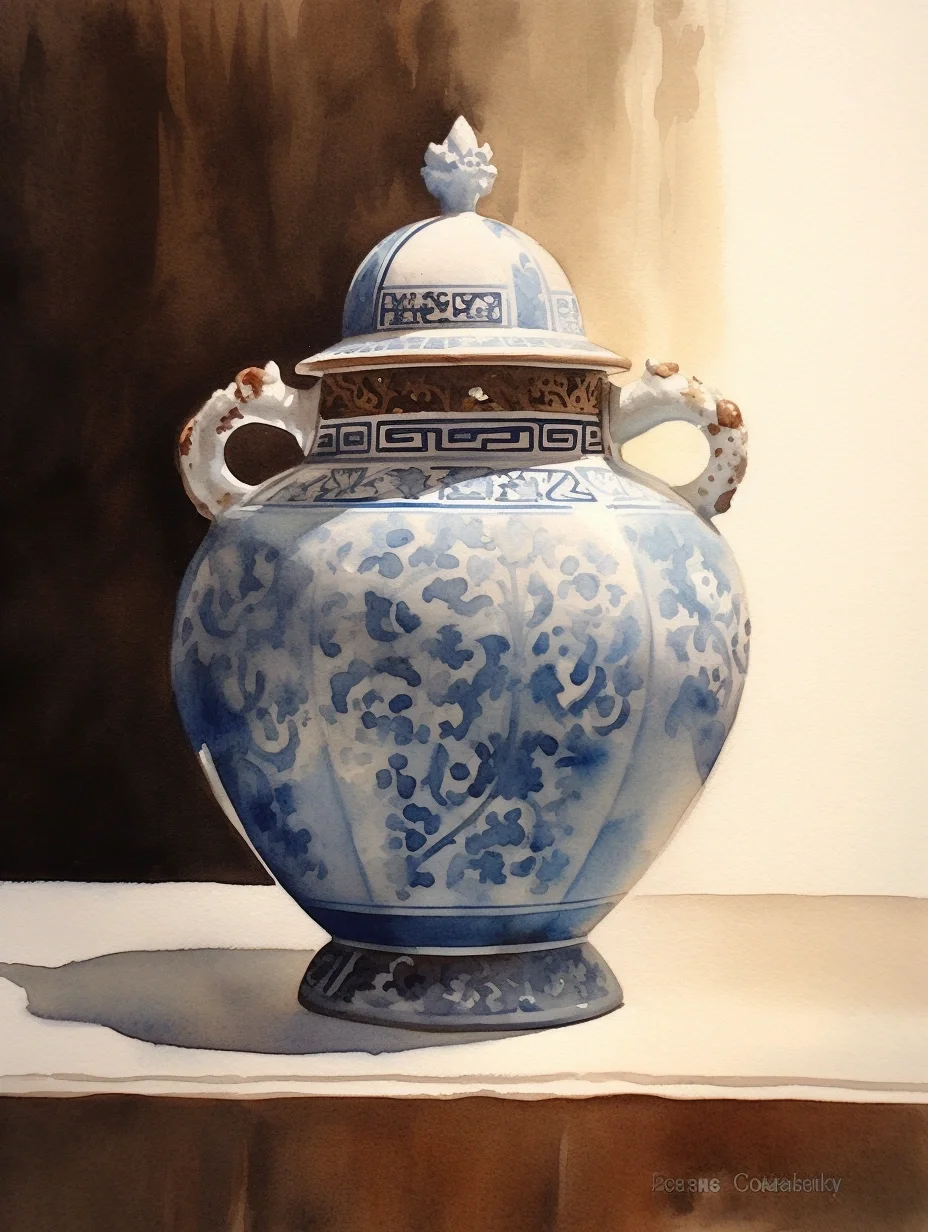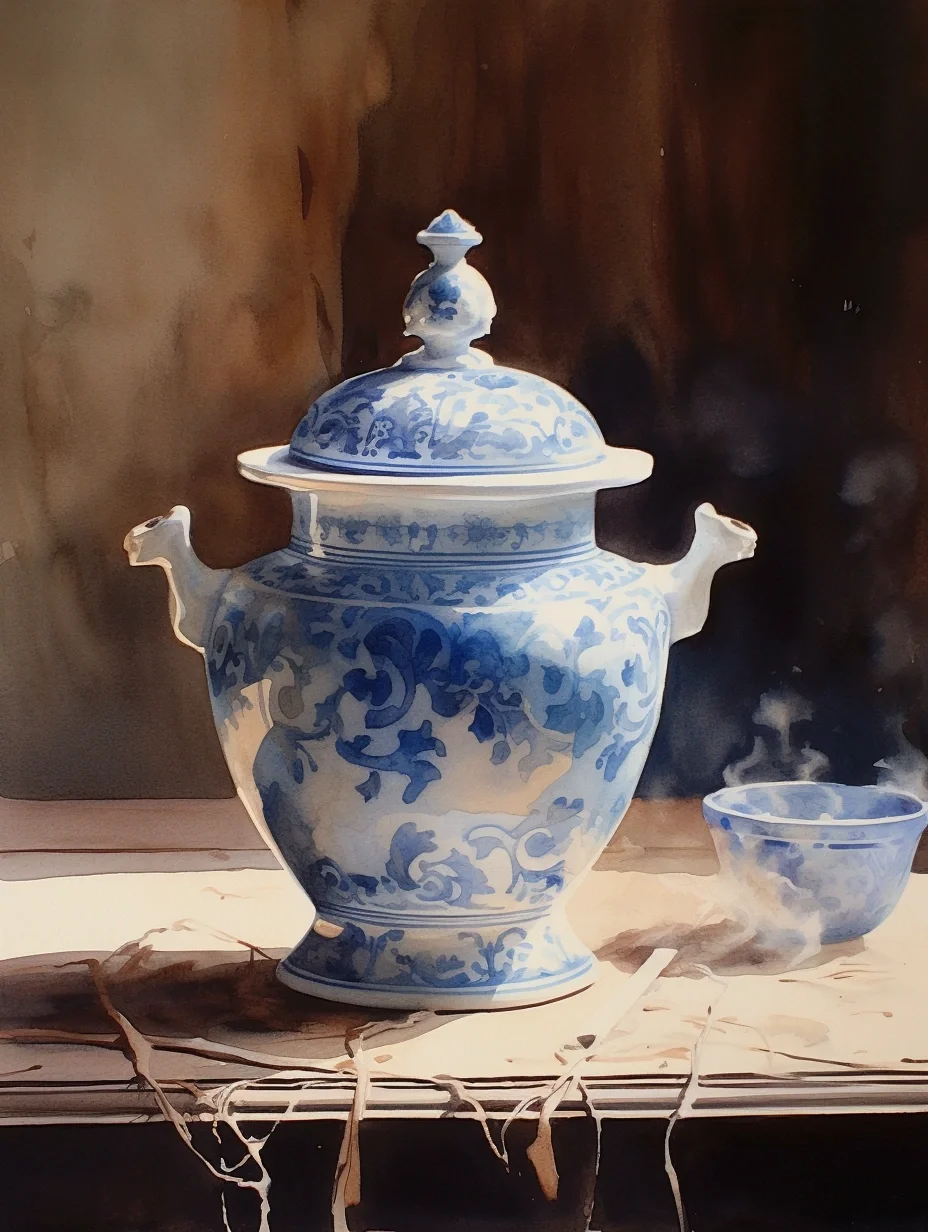瓷器 水彩 AI midjourney 青花瓷