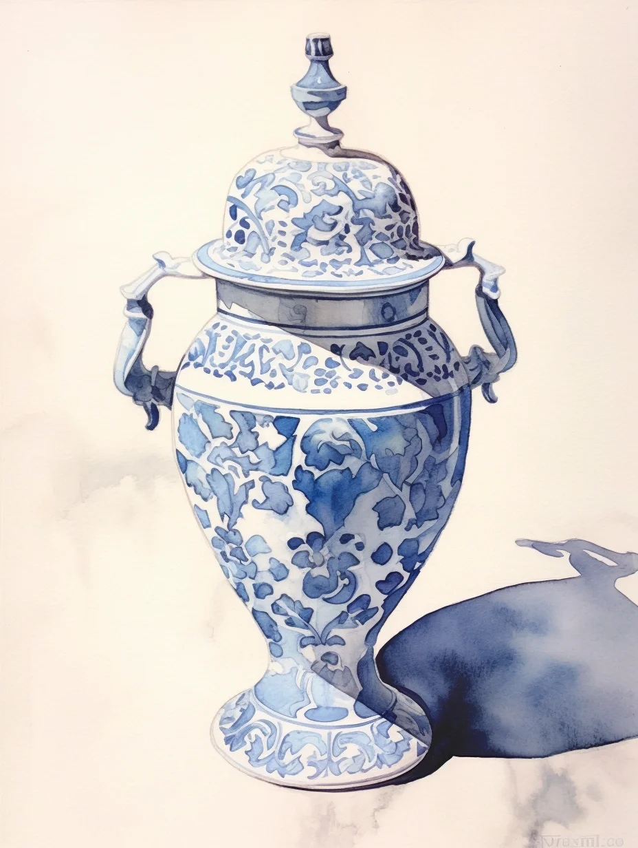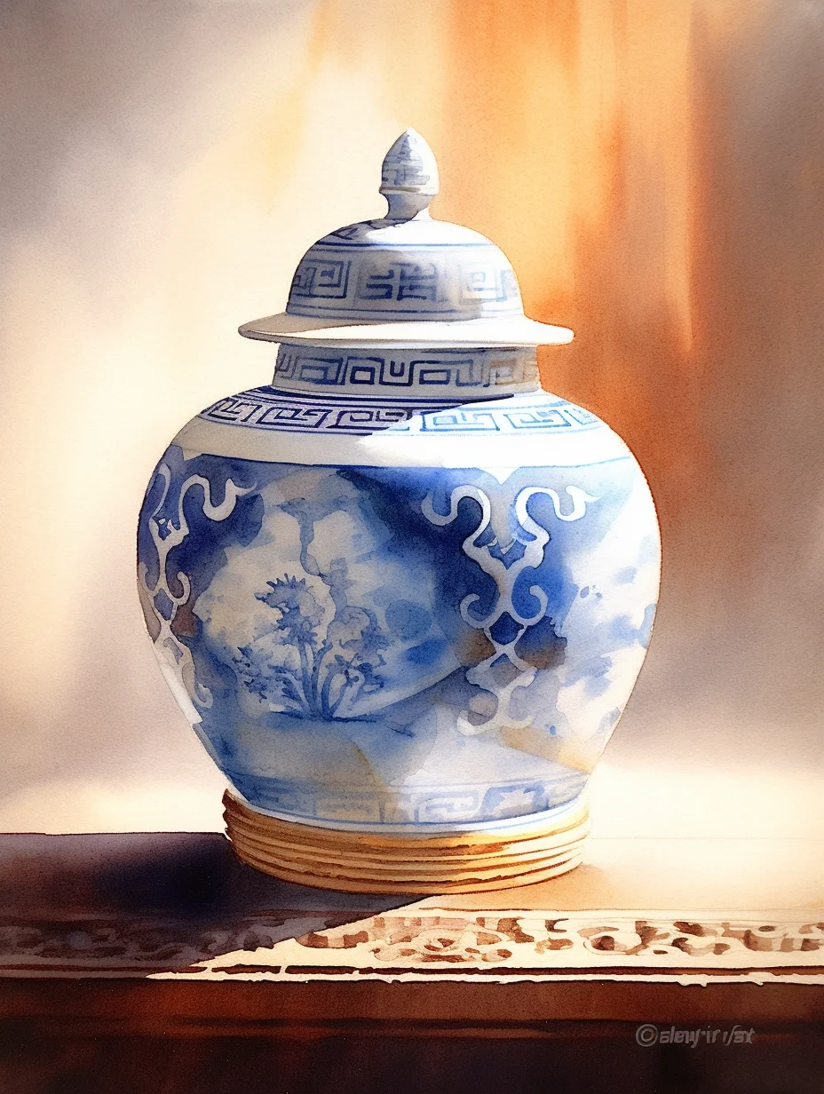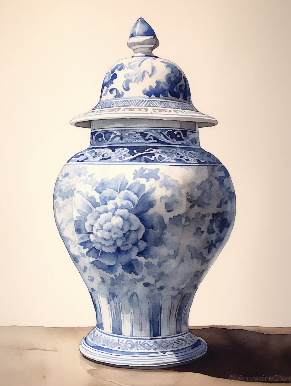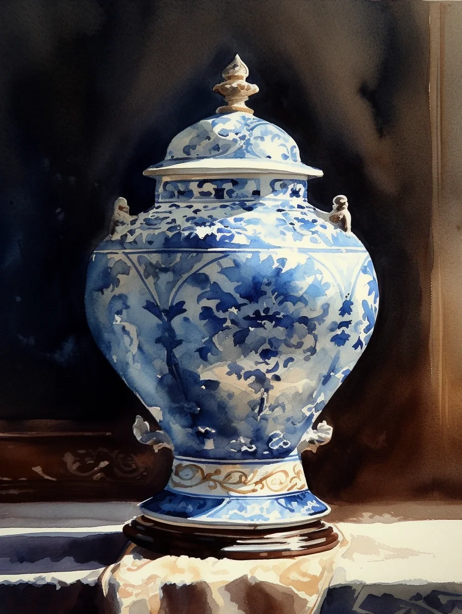 瓷器 水彩 AI midjourney 青花瓷
