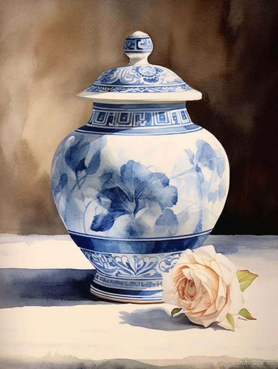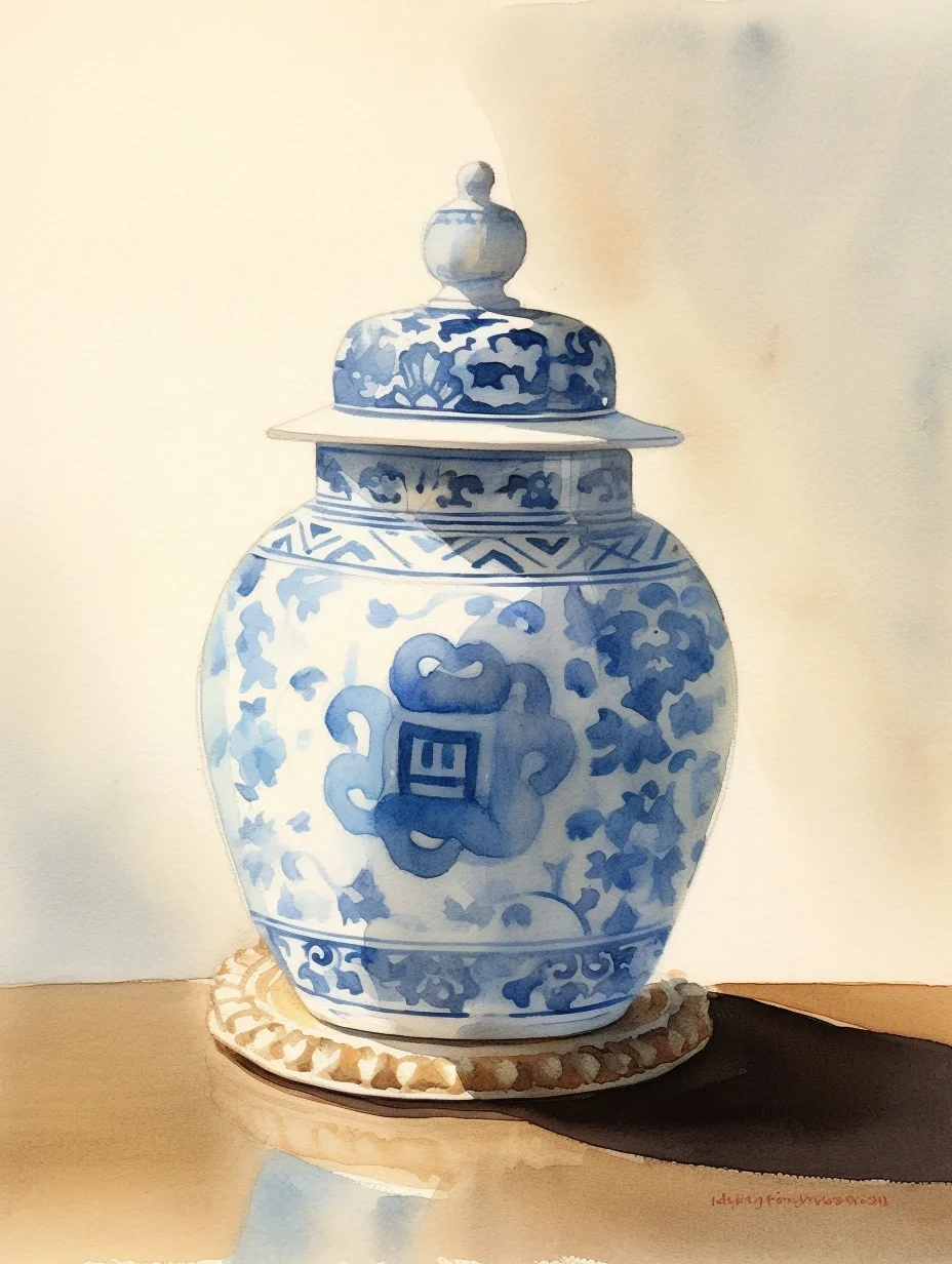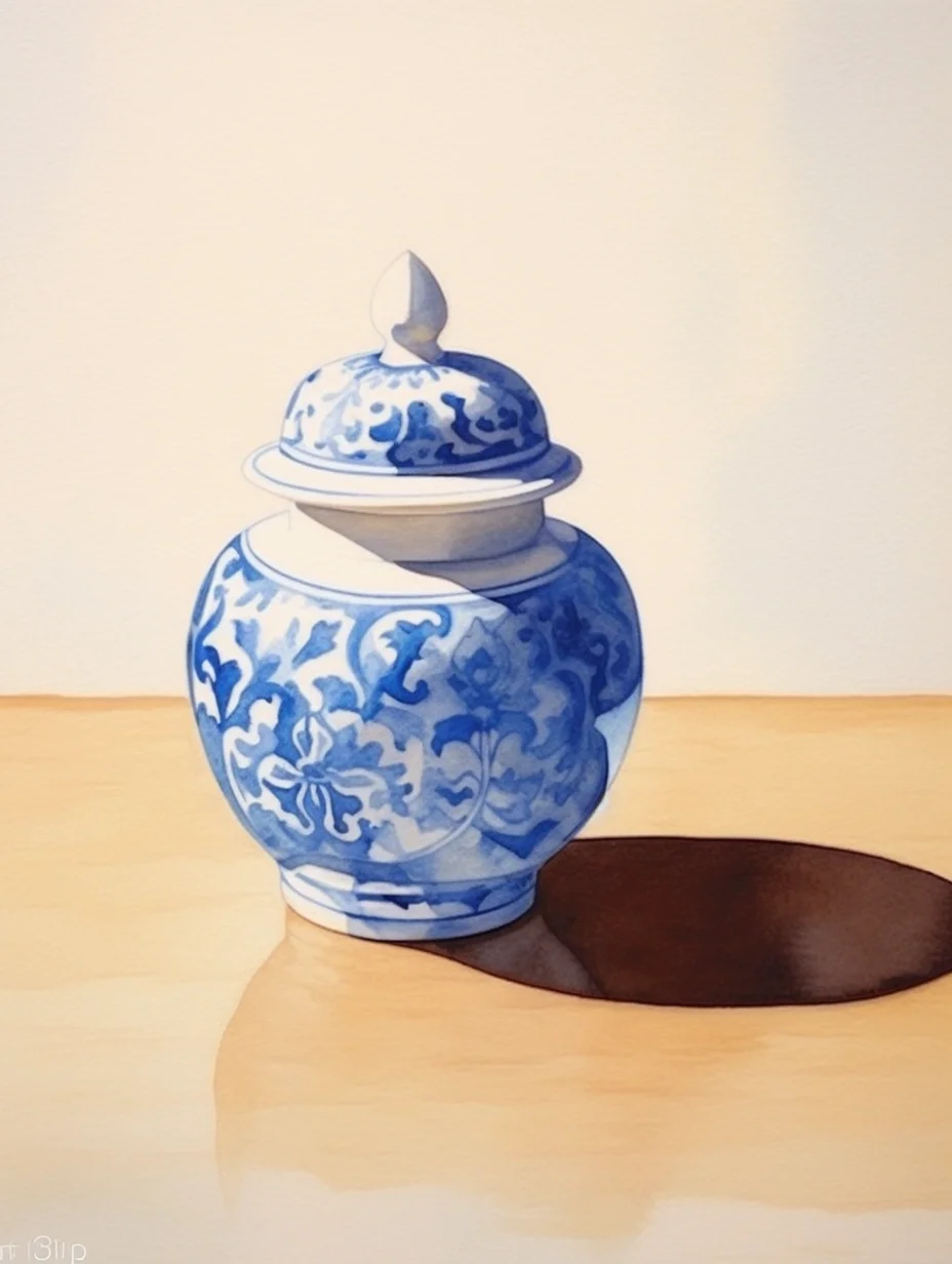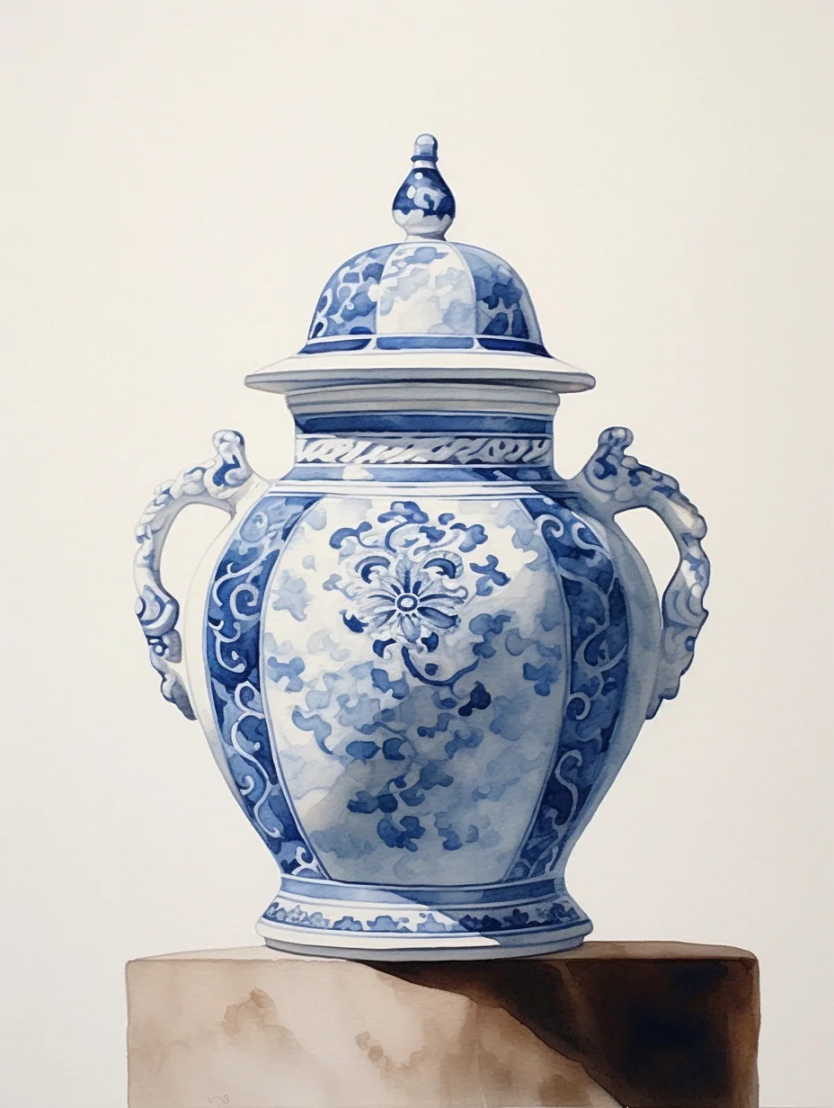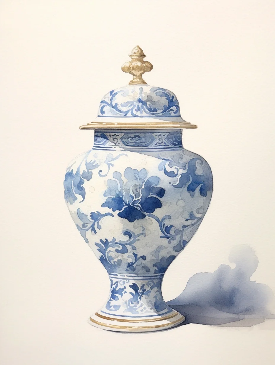 瓷器 水彩 AI midjourney 青花瓷