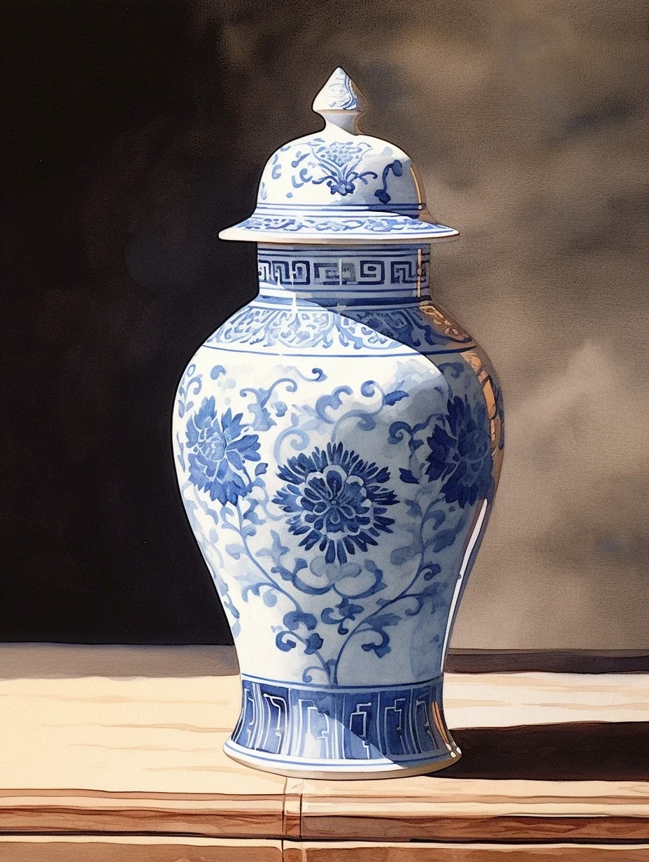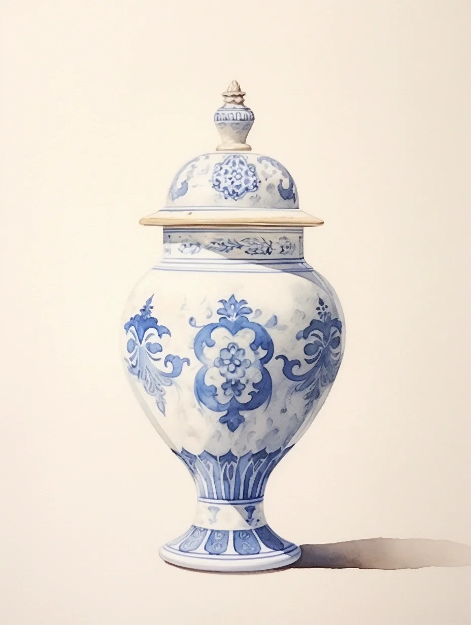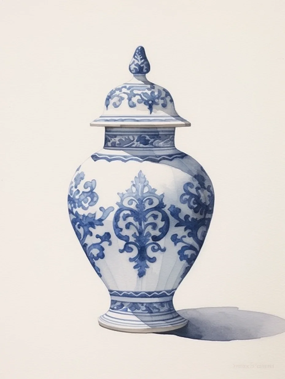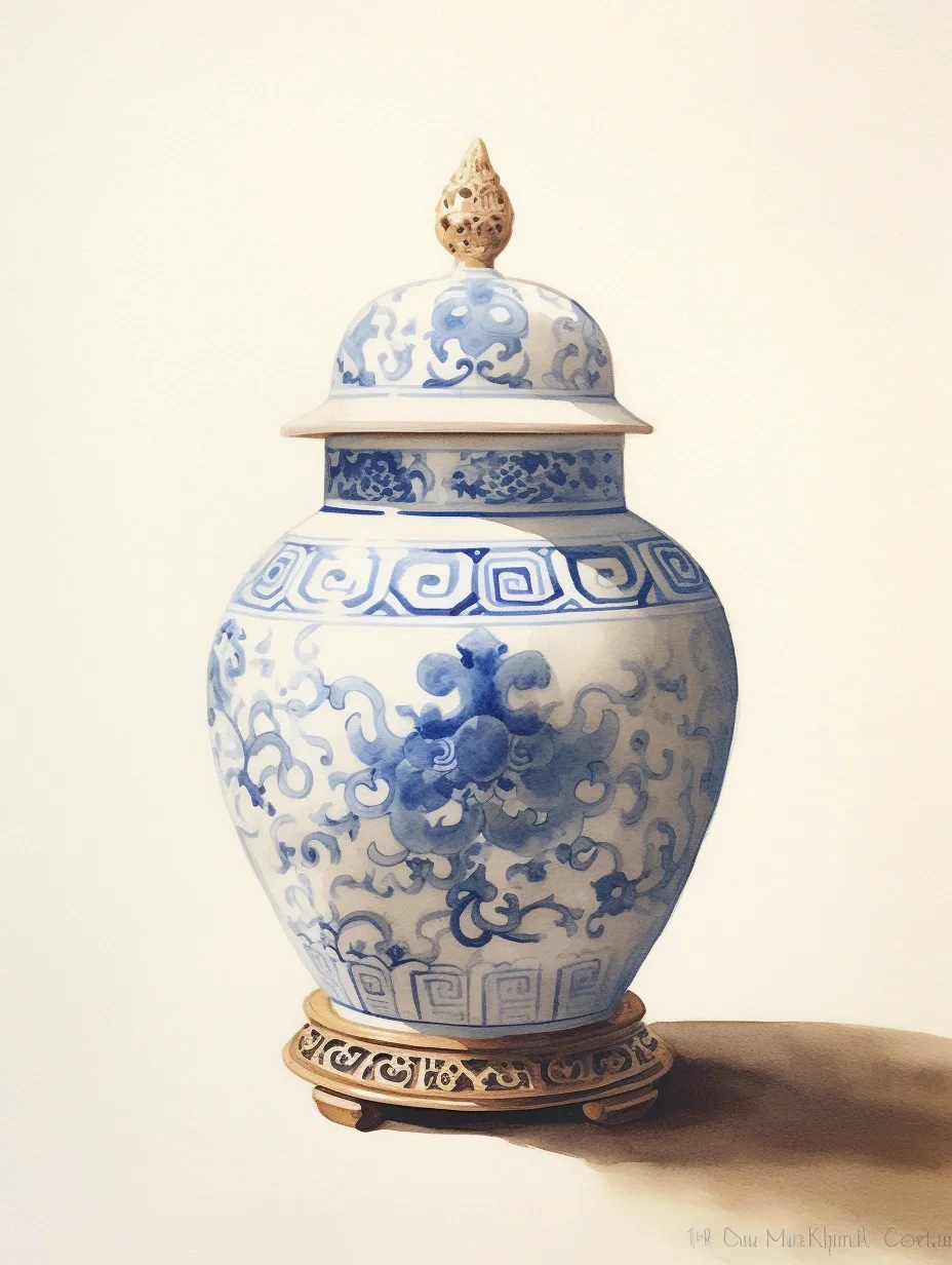瓷器 水彩 AI midjourney 青花瓷