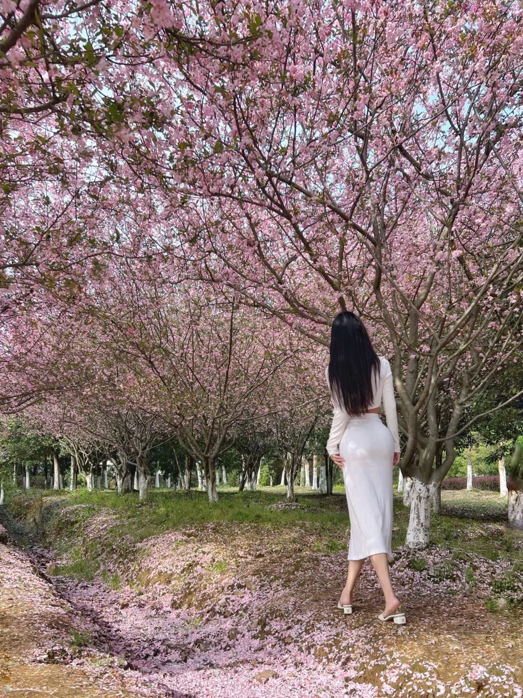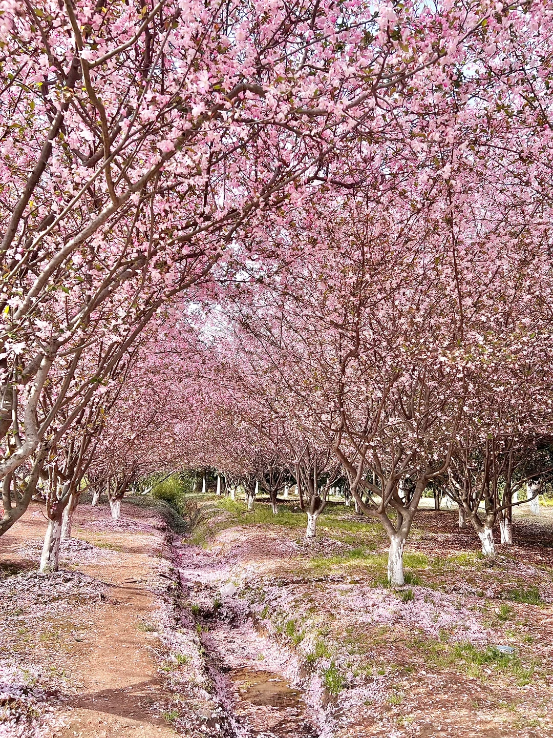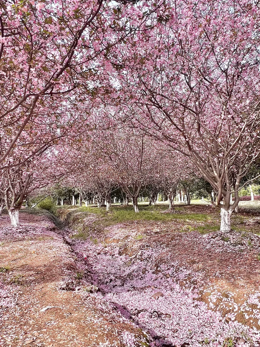 散落的花瓣形成了一条花河
