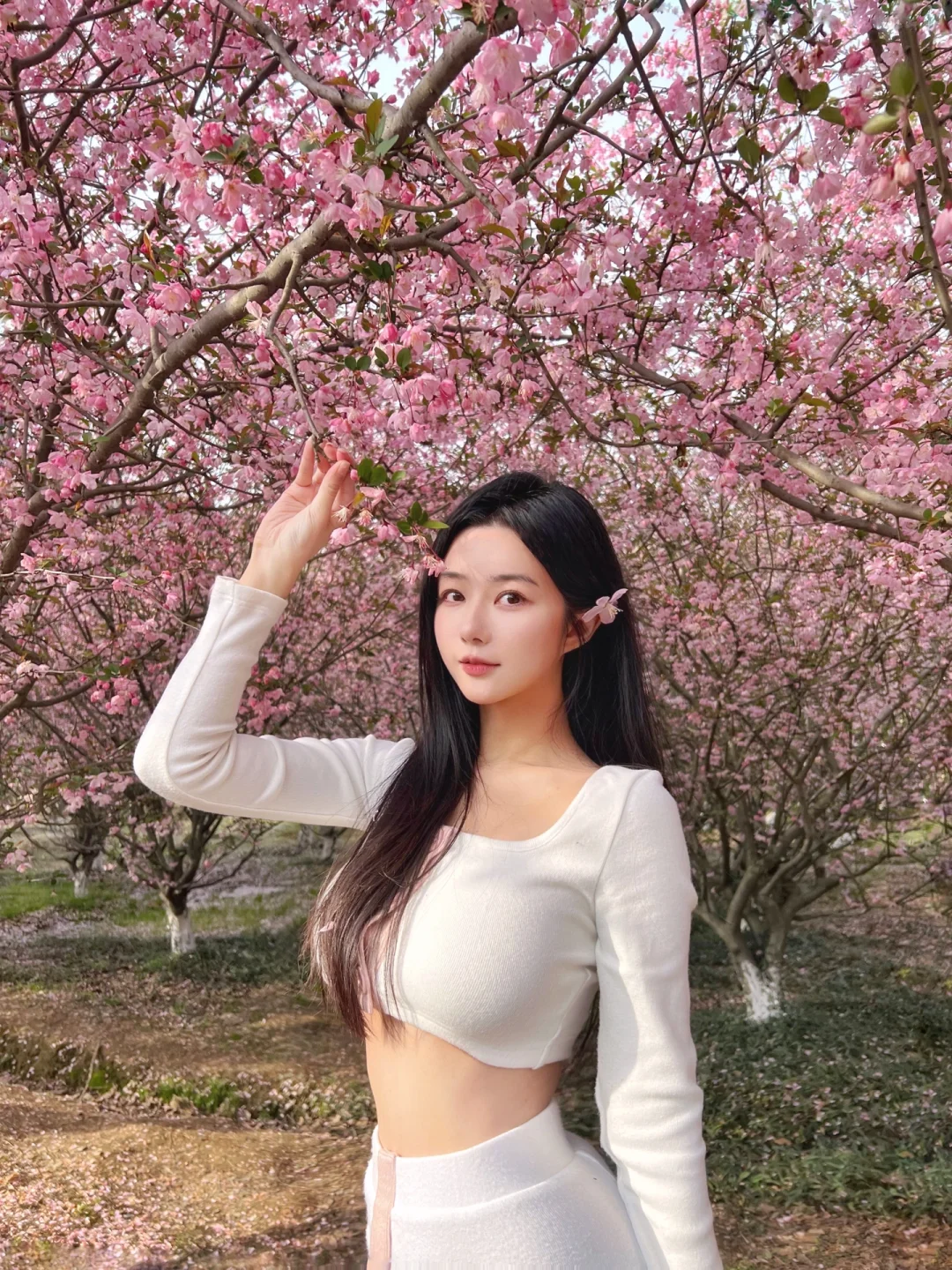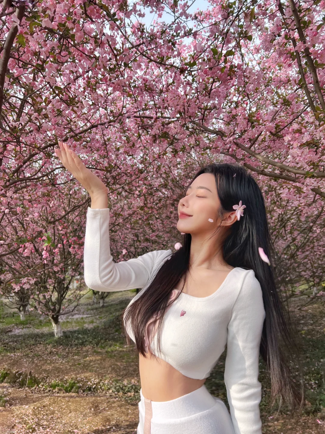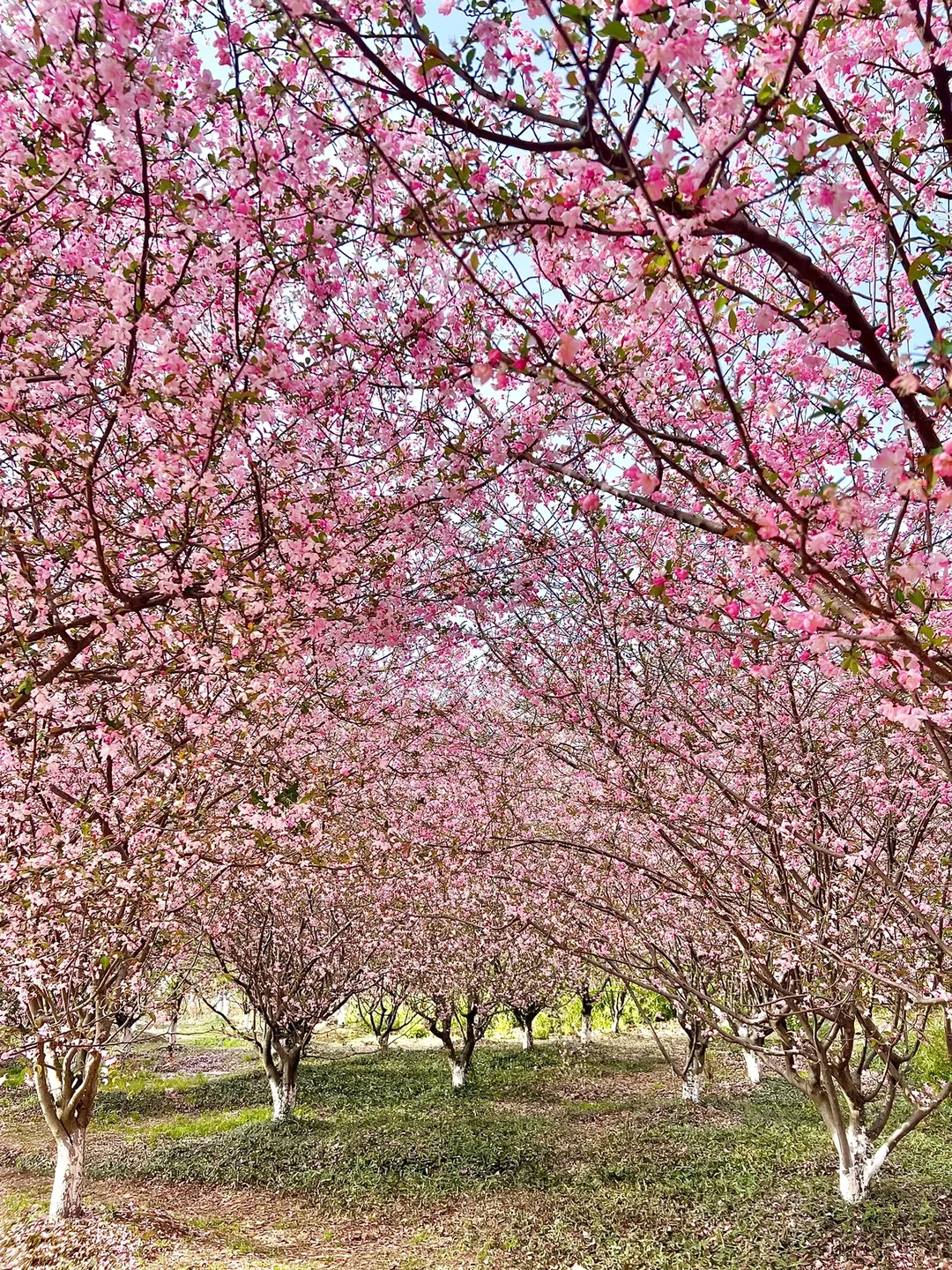 但樱花完全被成片的海棠花海盖过了风头