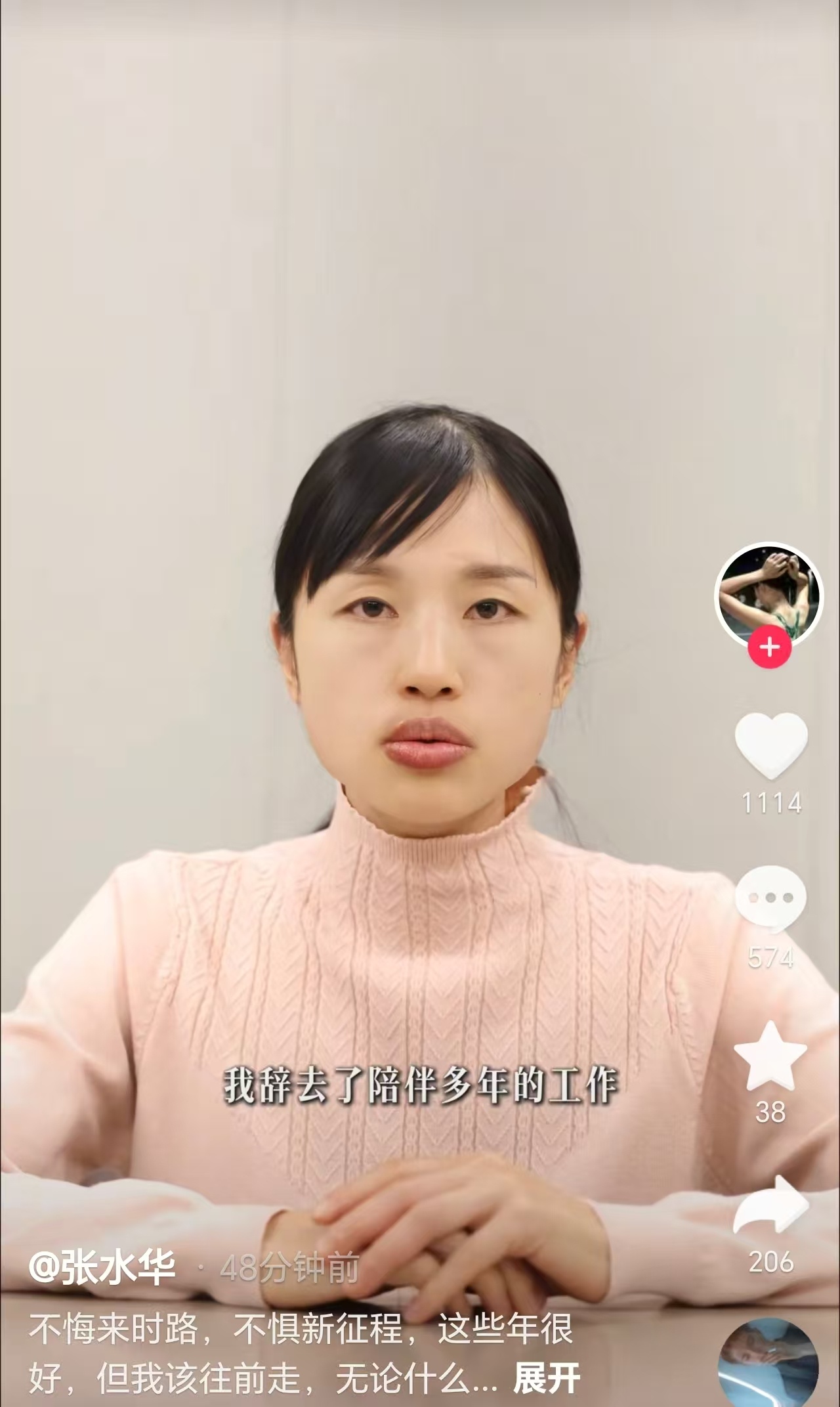 【#最快女护士张水华已辞职#】#张水华辞职# 1月2日,张水华在个人社媒宣布辞职:不悔来时路,不惧新征程,这些年很好,但我该往前走,无论什么原因离开,都已成为我的一部份,祝前路坦荡,依旧温暖有光。