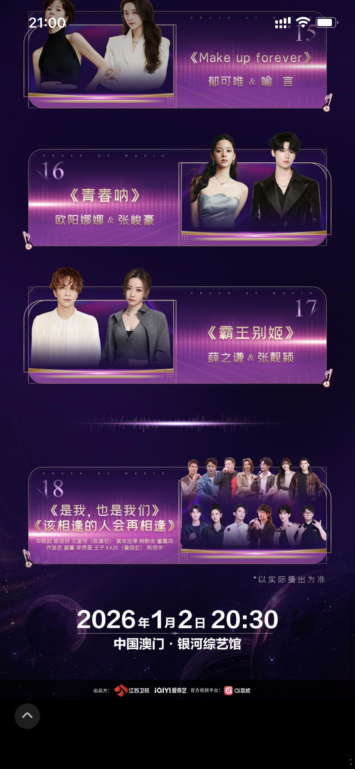 音乐缘计划2年度盛典2026年1月2日,音乐缘计划第二季年度盛典,新年第二天就能听到这么多好听的歌,太幸福了!