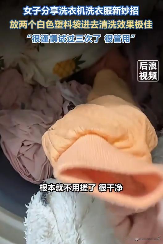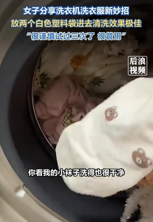 这是什么原理?山东青岛,一女子用洗衣机洗衣服,洗完后发现衣服格外干净,连边角污渍都洗掉了。她有点纳闷,仔细一看才发现,滚筒里不知什么时候混进去了一个白色塑料袋,而这竟然成了她的意外发现 洗衣服,几乎是家里最单调、最让人提不起兴趣的家务之一。 正因为太无聊,总有人想着在“怎么洗得更干净”上动点小脑筋,前不久,南昌晚报报道了一个最近在生活圈引发热议的奇招:有人把两个塑料袋丢进洗衣机里。 乍一听,这操作确实有点离谱,但事情的起因其实很普通——一位女士洗衣服的时候忘了掏口袋,一个塑料袋意外地和衣服一起进了滚筒。 洗完晾衣服时,她惊讶地发现,衣服竟然比平时看起来更干净、更亮。 为了确认不是自己眼花,她在接下来的两次洗衣中,特意加入了两个干净的白色塑料袋,结果发现衣服的领口、袖口这些平时最难洗的地方,甚至袜子都比平时干净不少。 把这个发现发到网上后,很多人第一反应就是:“这到底是什么原理?” 其实,这并不是塑料袋本身有什么神奇的去污能力,有人猜测塑料和油污都是非极性物质,会互相“溶解”,但在常温水里,这种效果微乎其微,可以忽略不计。 真正起作用的,是这些在滚筒里自由翻滚的塑料袋,现代滚筒洗衣机的工作原理,主要是把衣服提起来再摔下去,模仿手工洗衣时的“摔打”动作。 但衣服一旦沾水,很容易抱在一起,尤其是轻薄的T恤、袜子或者小件衣物,可能整个洗涤过程中都紧贴在滚筒壁上,水流根本冲不到里面。 这时候,轻飘飘的塑料袋就起了作用,它们密度低、漂浮性好,在水流推动下在缸里乱窜,把抱在一起的衣服撑开。 可以想象一下,就像煮饺子时,你得用勺子把饺子拨开,否则有些地方根本不会熟,塑料袋在水里翻来覆去,不规则地推开衣服堆,增加了衣物之间的摩擦,自然就更容易把脏东西带走。 再加上塑料表面光滑,甩干或晾干时容易产生静电,把衣服上的毛絮、灰尘吸附掉,衣服看起来就更干净整齐。 不过,这种方法并不适合所有人,也有不少风险,最大的隐患就是塑料袋本身——它不是专门的搅拌球,而是普通的薄塑料袋。 网友中就有人尝试,结果洗完衣服一看,塑料袋被搅碎成很多小片,粘满了整筒衣服,需要一点一点清理,费时费力。 更严重的是,这些细小的塑料碎片会形成微塑料,顺着排水管流走会污染环境,留在衣服上还可能刺激皮肤,而洗衣机方面,这些碎片容易卡在排水泵或者滤网上,导致机器堵塞甚至损坏。 另外,不同面料的耐受程度不同,牛仔裤、帆布衣服相对耐磨,增加摩擦可能没问题;但丝绸、羊毛等娇贵面料,一旦额外摩擦,容易起球、勾丝,长期洗下来可能损坏衣物表面。 其实,这种偏方流行,反映出大家对衣服洗不干净的焦虑,真正想让衣服干净,科学方法才最可靠:根据衣服材质和污渍类型选用合适的洗衣液,比用塑料袋硬搅更温和有效。 洗衣机也要定期清洗内筒,洗完衣服及时开门通风,让里面干燥,防止霉菌滋生,衣服洗不干净或者越洗越脏,问题大多出在机器本身,而不是衣服或洗衣液。 至于网上热议的“袜子能不能和衣服混洗”,更多是个人卫生习惯的事,有人觉得只要有杀菌步骤就行,有人看着就心里不舒服。 生活习惯没有统一标准,但在给洗衣机“加料”这件事上,最好谨慎一些,否则小聪明可能变成大麻烦,不仅伤衣服,还可能损坏家电。 信源 南昌晚报 12月29日