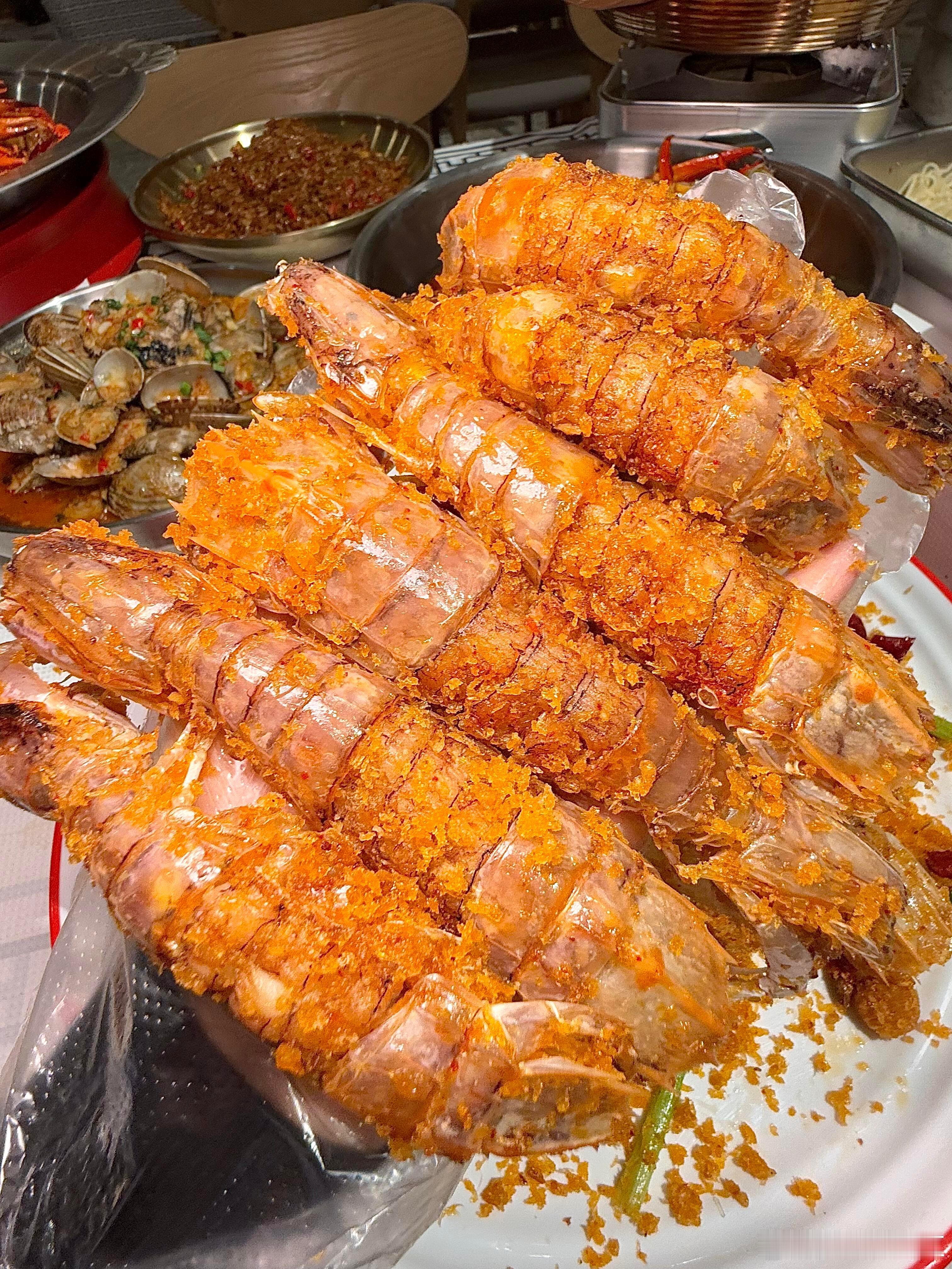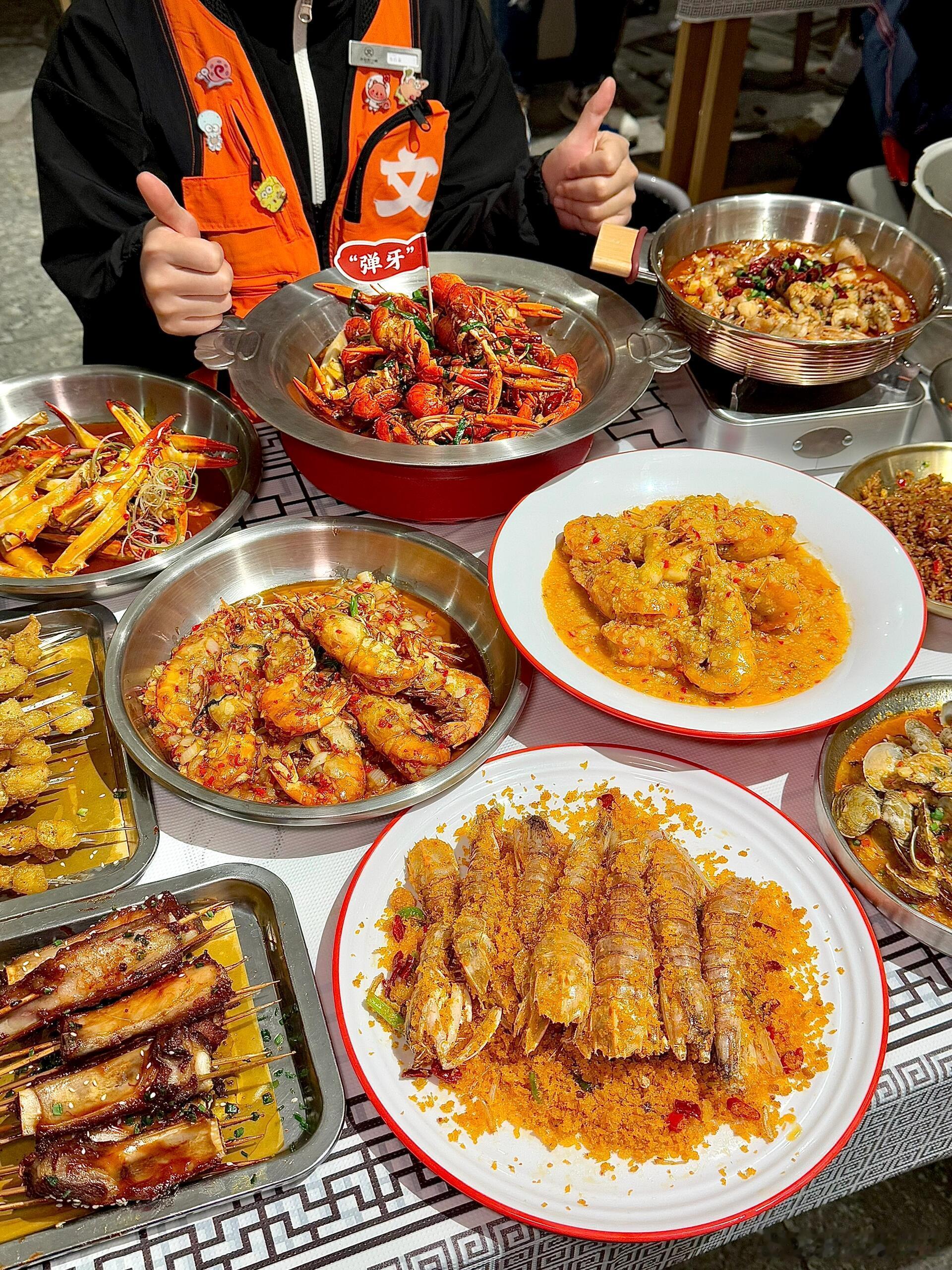 深圳大排档测评!!!发现一家巨好吃的。。。这家饭点排队人真的好多!不愧是全国口味虾大王!-✔️长沙口味虾每个个头都好大好新鲜!虾肉很好剥 吃起来很紧实Q弹!✔️绝味干爆罗氏虾上面铺满了酱料 吃起来又辣又过瘾!🥵虾头里面还有满满的膏!越吃越上头!✔️烤牛油、烤排骨、蒜辣罗氏虾、香辣蟹钳、高压锅生蚝、爆炒牛蛙……这些都蛮好吃的!!真的很适合跟朋友来这吃夜宵!大排档的氛围感也很好~-