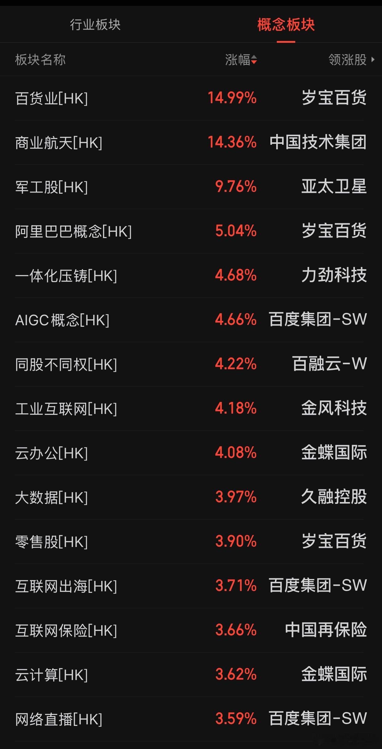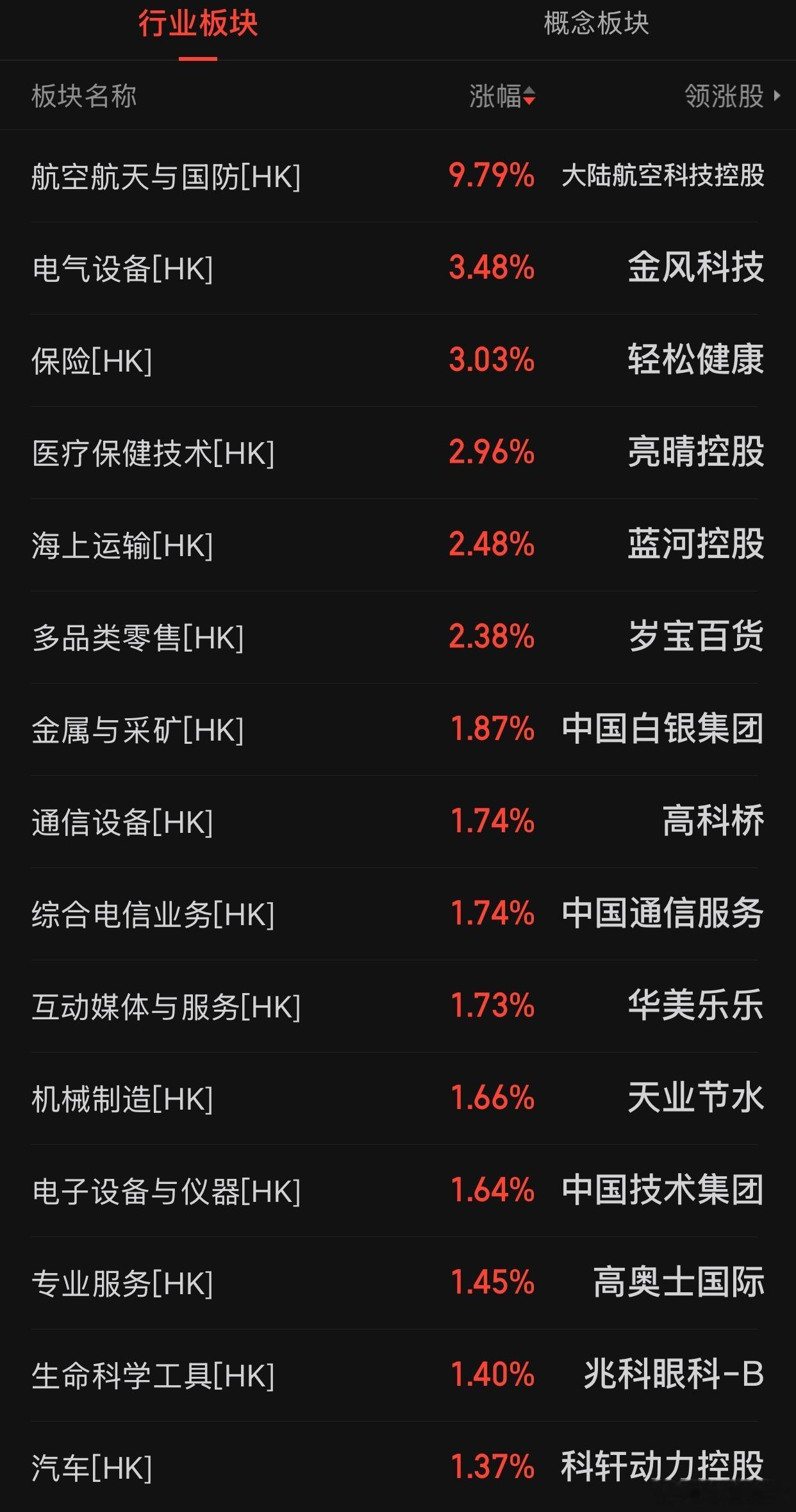 【港股收盘,恒生指数涨2.76%,恒生科技指数涨4.0%】板块方面,电气设备、保