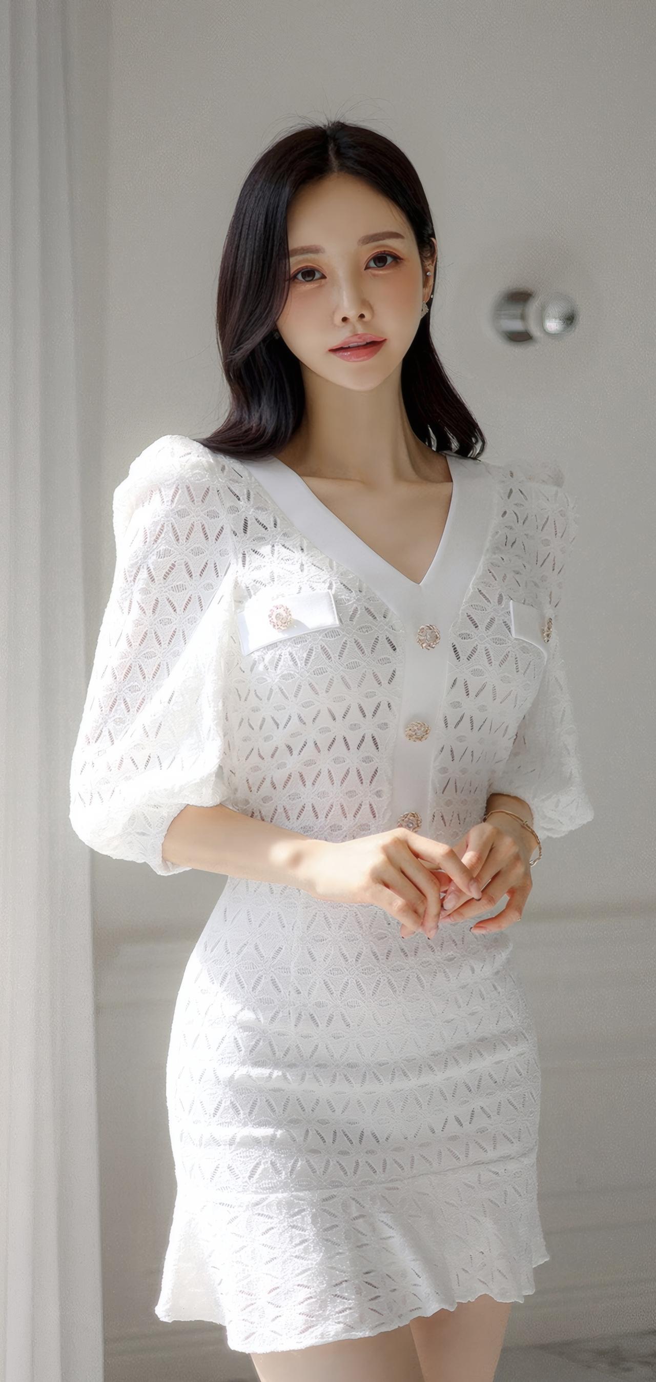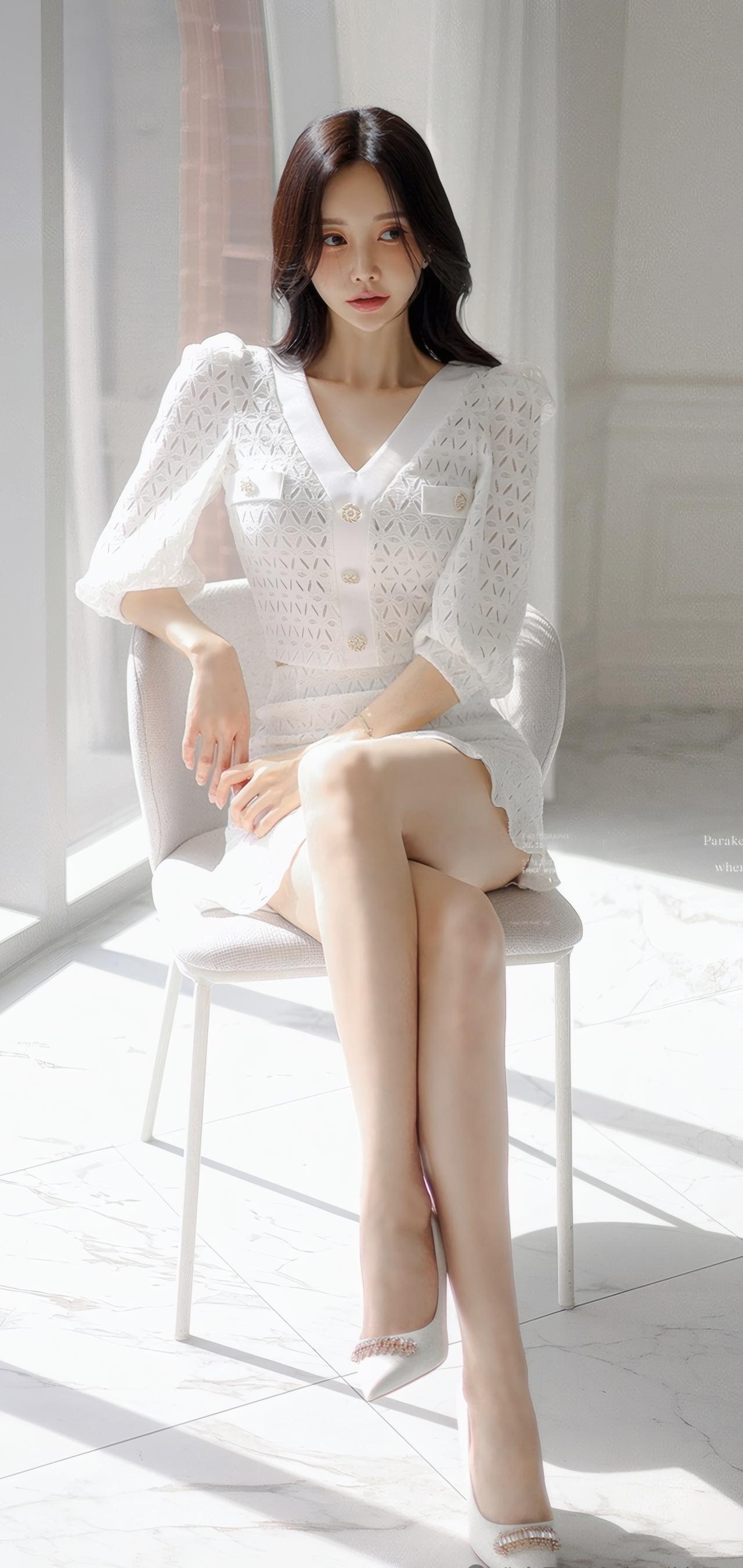 都市白领的优雅穿搭,白色镂空连衣裙搭配高跟鞋,尽显时尚与自信。