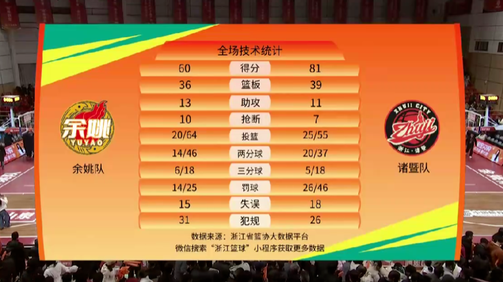 1月2日晚,浙BA城市争霸赛第二十一轮比赛继续进行。今晚进行对决的是余姚VS诸暨、嘉兴经开区VS湖州。最终,诸暨、湖州获胜!诸暨也以14胜6负的战绩收官城市争霸赛。