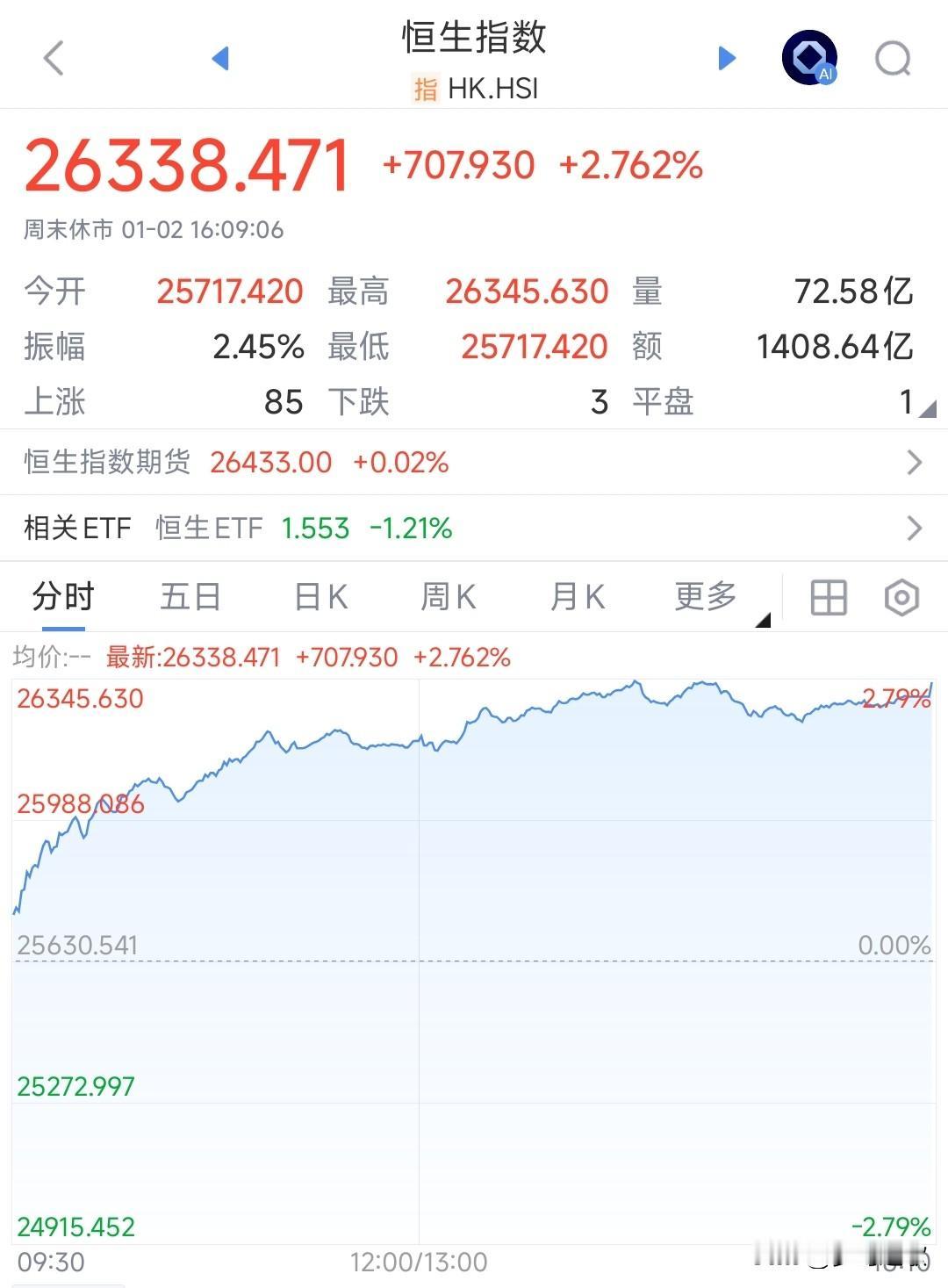 从历年元旦后首个交易看,A股周一开盘还是比较稳的 历史不会重演,但惊人的相似,下面是历年元旦后首个交易日的大盘情况 2020年:+1.15% 2021年:+0.86% 2022年:-0.20% 2023年:+0.88% 2024年:-0.43% 2025年:-2.66% 值得关注的是如果前一年A股是牛市的情况下,第二年开年都是大涨2015年:+3.58%,今年A股还是很稳的。 而且港股周五大涨了超过2%,完全就是牛市延续的行情。也会把信心传导到A股,成为A股上涨的一大动力。