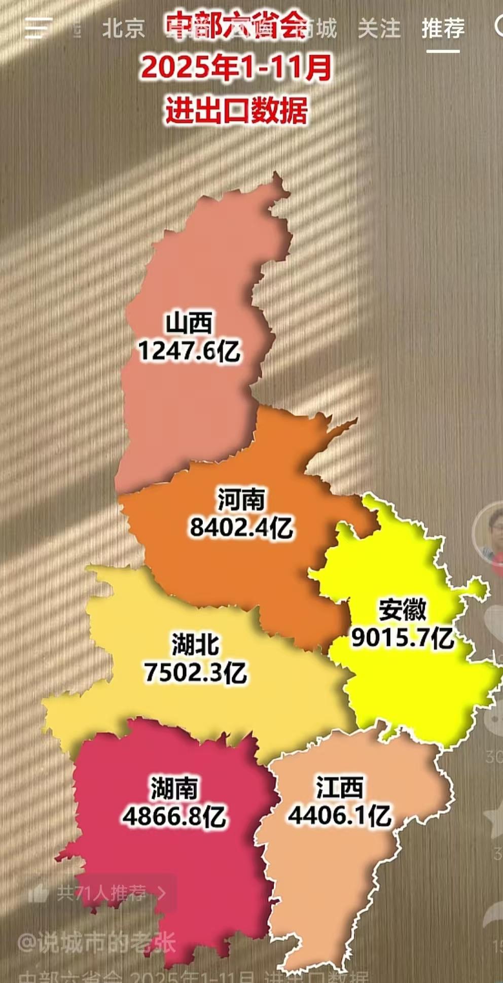 看到全国各省市2025年的工业营收表,安徽进入前五,很是诧异,这发展速度太快了吧!但看到第四的浙江近十一万亿,安徽才五万亿出头,这是跟前四名的发达工业经济大省相差太远了。 不过安徽考虑的是长期利润,而且每个行业都有上下游产业链,一旦有一家有利润,基本上都是全面开花,所以长期稳定发展还是看好安徽的产业,安徽基本上都是芯屏汽核能源汽车家电光伏,国家重点扶持的产业,国家未来10年20年的阳光产业基本上安徽都占全了。 在今年在中部安徽、湖南、湖北、河南、山西、江西六省排名中,安徽进出口总额位列第一,这成绩在长三角地区经济强区排名虽靠后但也非常起眼,因为沪、苏、浙都是有名的经济强省强市,它们位于中国东部,是中国经济最发达的区域之一,综合科学技术水平高,工业门类齐全,交通网络发达。 安徽经济排名 安徽经济实力 安徽产业分析