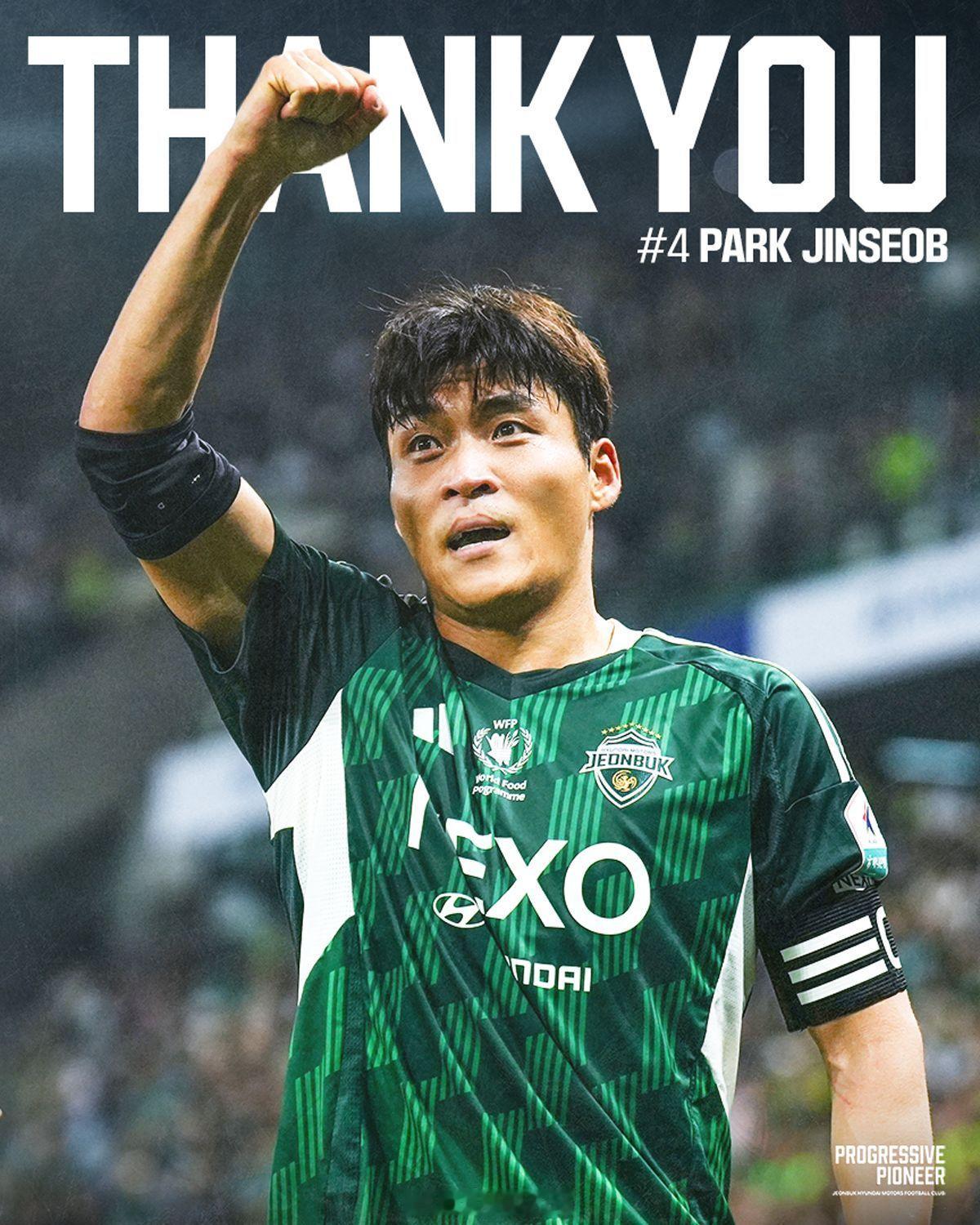韩国全北现代汽车官方宣布,球队队长、30岁的韩国国脚中场朴镇燮(Park Jin