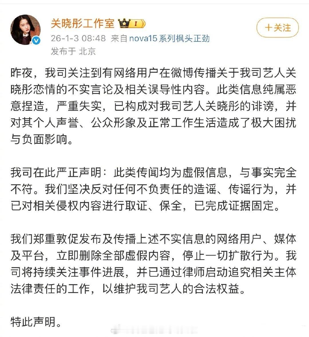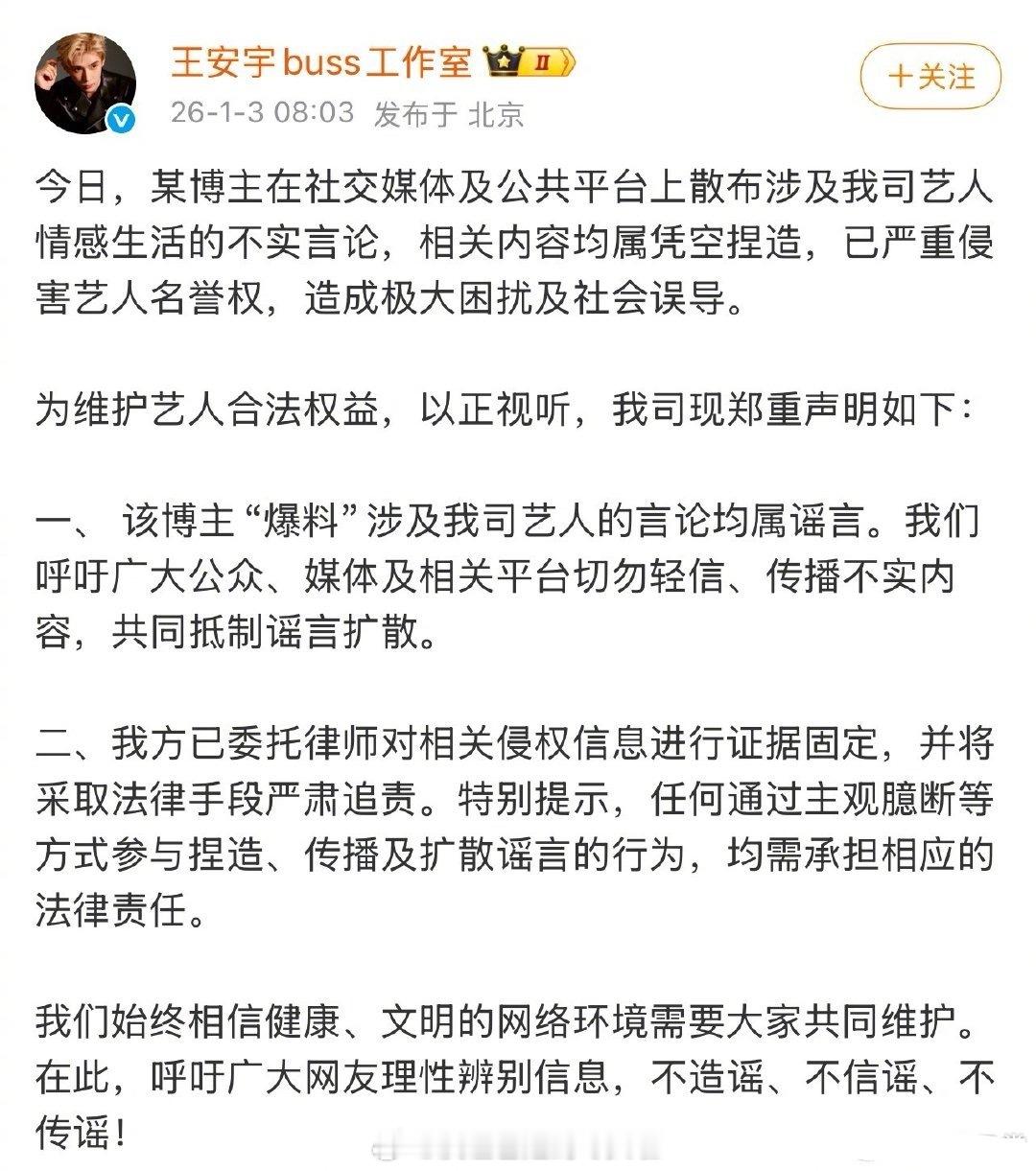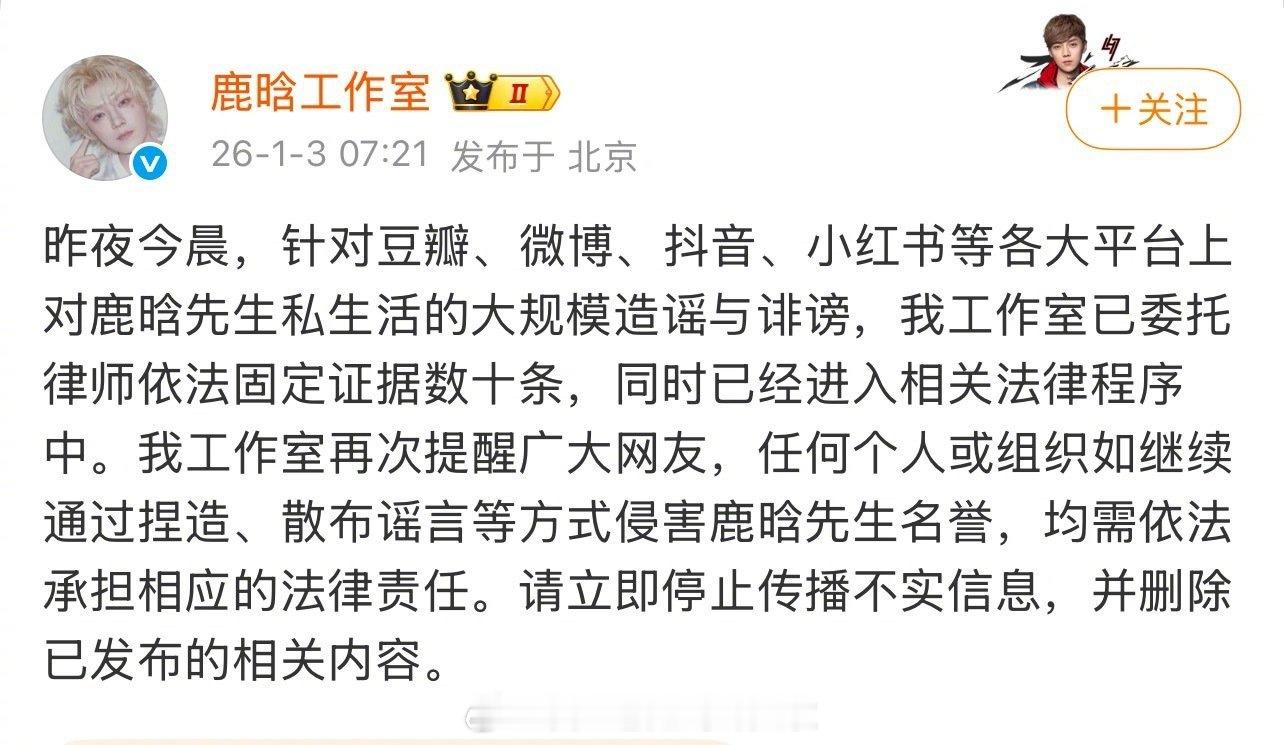 鹿晗、关晓彤、王安宇、檀健次、范丞丞、林更新、黄明昊工作室发了声明👇iamroosie司晓迪iamroosie 鹿晗