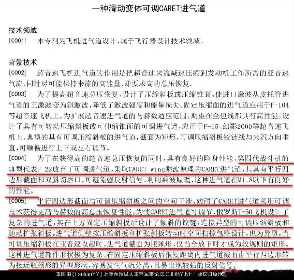 烽火问鼎计划武器装备俄苏75战机或于2026年量产 2026看点:VKS希望之星苏75迎头和尾后隐形优于苏57的理由 尽管苏霍伊设计局挽尊苏57和苏75LO特性相似,但从苏75对散射源的处理看明显强于苏57。 根据J20隐形总师专著提出的三阶段处理论(图1)比较苏75与苏57➡️第一层需要比较进气道、天线舱和座舱。图2~图7可见苏57进气道是带外八字安装角的斜向上直通进气道(这与苏27保持一致),进气道前缘附面层抽吸、压缩斜板铰链、辅助进气道、泄压气门、进气道前缘的变截面设计导致气流分离强反射、两段式分裂斜板增加了爬行波绕射、LEVCON产生的断面和LEVCON在边条上的铰链缺口参考本博的T50-9号原型机和苏57的LEVCON旧文。 如果要问苏57进气道这么多硬伤,苏霍伊挽尊了什么?那么从最新款苏57看,用金属屏蔽网勉强处理了辅助进气道和泄压放气门,技术复杂增重又没完全处理掉进气道其他硬伤。例如对LEVCON的处理,苏57的处理明显不如隔壁的J20,J20鸭翼根部明显内嵌入机身、用吸波蒙皮和大部分航向角不可见鸭翼转轴、鸭翼巡航偏转不超过正负5度的设计改善了鸭翼在X波段隐形、可以说J20在X波段迎头RCS是略低于有隔道强反射的F22A的,只不过其它波段鸭翼回波无法隐藏在主翼回波里导致不如F22A。更不用提隔道数量是F22A的2倍➕一堆断面和铰链孔硬伤(图4~图6)的苏57了。 ⭐️ 反观苏75进气道处理极为简洁参考图10~图12,苏75进气道延伸到下颚,比J10进气道更长,图12就是J10A进气道,你需要抵近到这个位置才能勉强看到小部分发动机,进气道更长的苏75就更难看到发动机了。从模型也可以看到苏75完全舍弃了复杂的可调进气道设计,图13显示DSI在2马赫以下是能正常工作的且总压恢复系数不低➕超过1.7马赫的飞行物无法隐藏红外特征,这也是为什么新一代隐形机普遍选择DSI进气道,例如J10C、苏75、F35、J20、GCAP、J36等。且DSI进气道取消隔道设计显著降低机高有利于降低头阻,苏75机高仅4米显著低于苏57的4.8米。由上可见苏75进气道一项减重、减阻、LO特性都显著优于苏57,甚至比J10C的进气道处理的更胜一筹(例如降低了机高)。 ➡️然后观察苏75的雷达罩,图14显示与2021版苏75直接用苏57的直线接缝雷达罩比,2025版苏75(无人款)机头刷了锯齿涂装(尽管是画的、可能FSS技术尚不成熟),至少证明苏霍伊没有外星科技让苏57的直缝雷达罩(图15)实现高隐形,还得老老实实研发锯齿接缝的FSS雷达罩、否则就会陷入在空域开雷达=在黑夜里开手电筒的窘境。➡️座舱双座苏75或苏56依然是苏30式气泡式座舱、单座均为分离式舱盖隐形显著不如整体外表面无加强筋的座舱盖(但有内加强筋减重),等苏霍伊什么时候资金到位再突破能超音速穿盖的整体舱盖吧(VKS显然不能接受脱盖弹射,而穿盖弹射的整体舱盖苏霍伊目前显然做不出来)。➡️第二层要比较次强散射源,各种传感器的凸起、外挂导弹是否内置、直边。参考图14和图16,苏霍伊明显计划在苏75上一改粗糙的三代机采用的球状传感器或DIRCM,转用多面体造型的EOTS和IRST,至少模型是这么设计,实物技术不成熟可以慢慢改,至少比放弃治疗的苏57处理次强散射源强。➡️第三层处理弱散射源,苏75的垂尾根部活动件出现了中美隐形机的柔性毛刷状蒙皮,目前苏75一阶段用117、二阶段用177均为AT矢量,只不过177带后锯齿比117推力大隐形好,加上没有大平尾和斜置2DCD人为增加的尾部下半球腔体反射,苏75尾后隐形100%优于苏57。⭐️综上所述,苏75在隐形三阶段处理方面虽然距离中美五代机存在一定差距,例如整体舱盖、天线舱、弱散射不到位(襟翼没有凹陷处理、机身部分开口没有多边形处理),但比苏57(迎头RCS0.4~0.5平方米)明显RCS低一个数量级、可以认为苏75迎头隐形能做到0.05的水平。 至于苏57隐形不隐形,厂家吹牛不如看用户意见,参考图18 VKS关联人Fighterbomber的评价,究竟是谁迫使苏57在后方深处作战?乌克兰可没有专业的反隐形雷达。