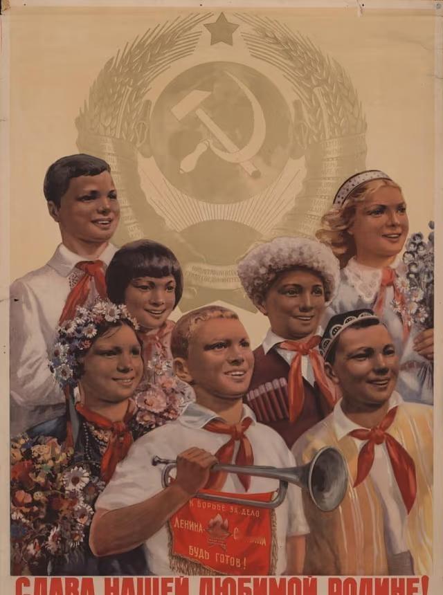 苏联海报:荣耀归于我们挚爱的祖国!1950年。 宣传画 历史的回声 二十世纪艺术 怀旧 复古