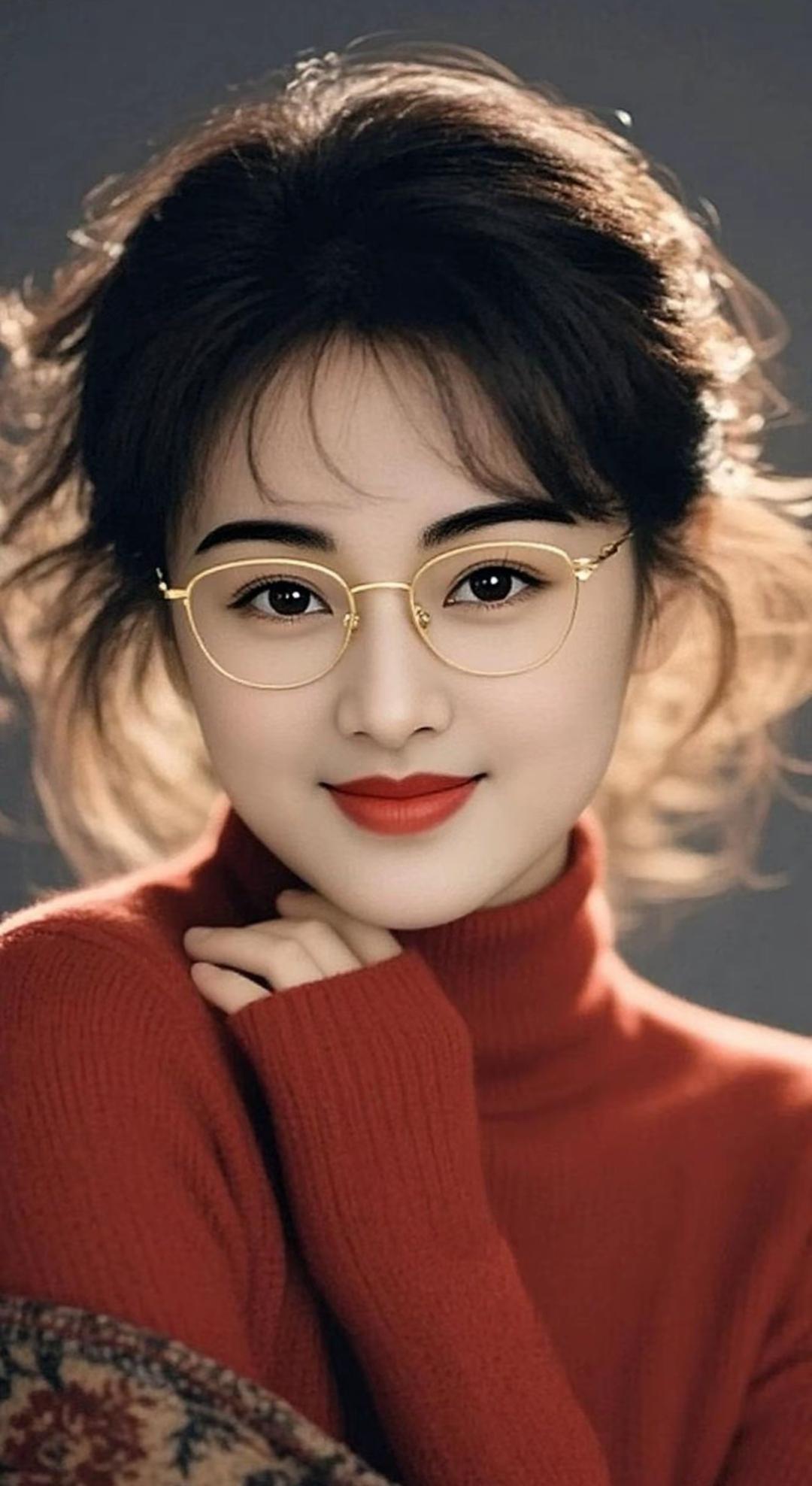 温柔甜美的眼镜少女,红衣搭配金色眼镜,散发着知性优雅的魅力。高雅气质美女美女人