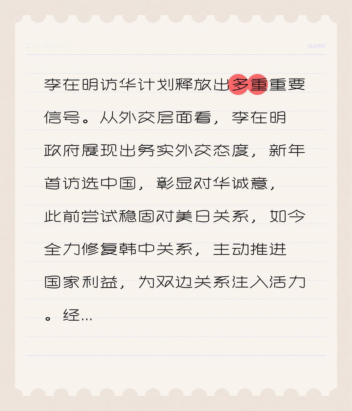 李在明访华计划释放出多重重要信号。从外交层面看,李在明政府展现出务实外交态度,新年首访选中国,彰显对华诚意,此前尝试稳固对美日关系,如今全力修复韩中关系,主动推进国家利益,为双边关系注入活力。 经贸上,他带200多位企业家组成的庞大经济代表团,时隔约6年再现如此规模,可见韩国对拓展与中国经贸合作的强烈诉求,经贸合作大概率是此次会谈核心议题。 在地区局势方面,中国一直致力于维护半岛和平稳定,这次访问也有助于双方就地区问题交流,推动相关问题妥善解决。