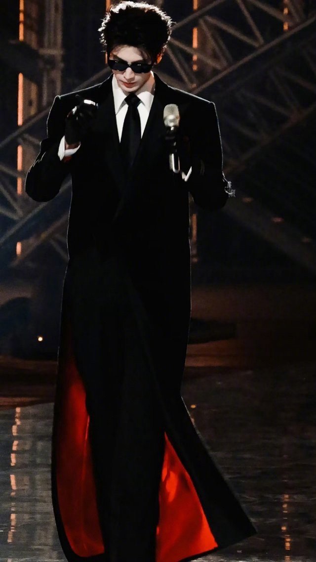 走秀还得是张凌赫走,这个张凌赫已经在我手机里走两天了,看见凌帝走秀视频就走不动道,天才红底内衬西服